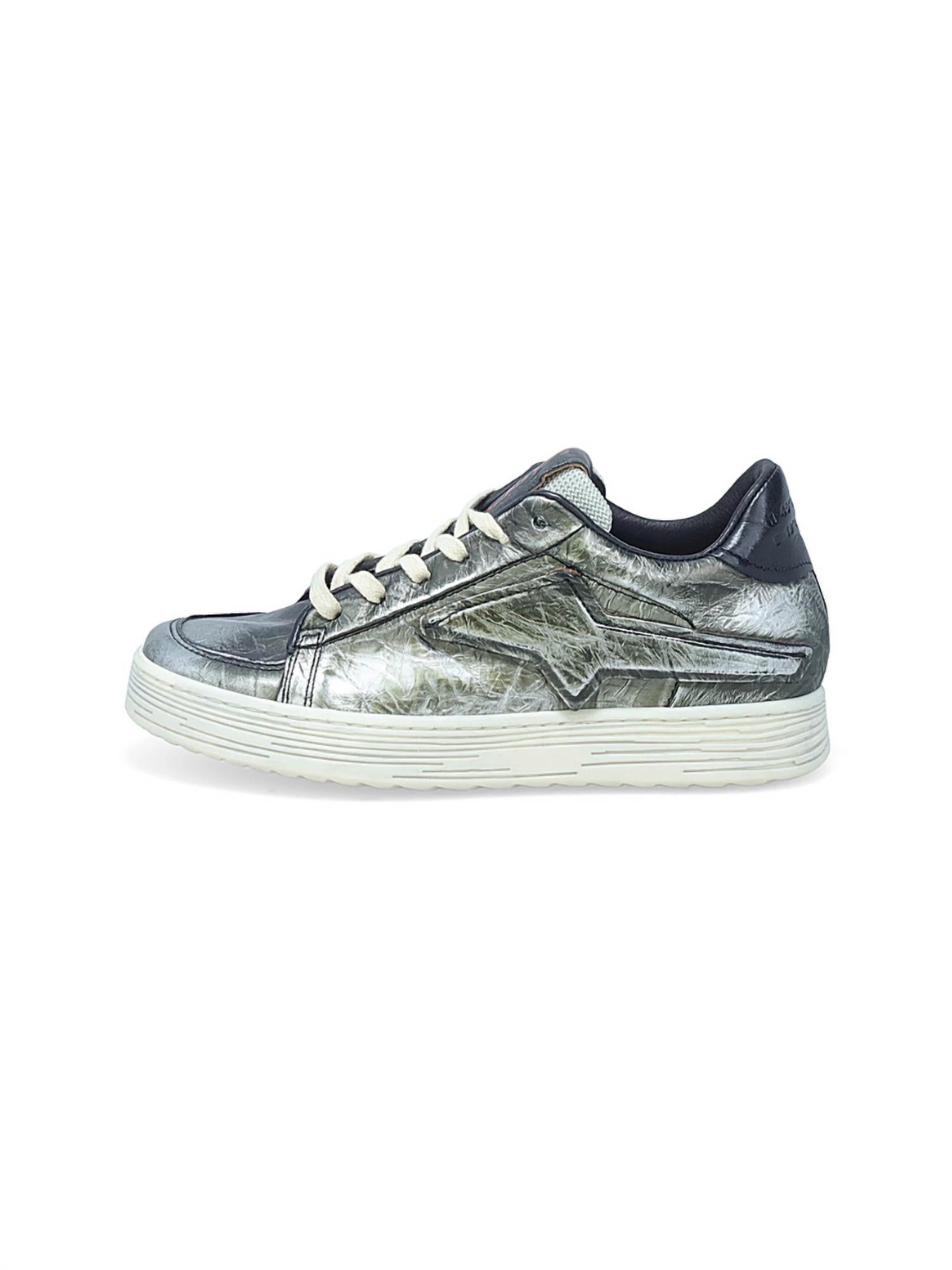 When fashion and function come together seamlessly. Step out in style with the A.S.98 Allen Sneaker in Antique Silver, striking the perfect balance between sporty and sophisticated. This women's sneaker boasts a leather upper and lining, complemented by a durable rubber sole. With a low-top design, it features a rounded toe and a sleek 1.5-inch heel along with a 1-inch platform. Proudly made in Europe, the Allen Sneaker is ideal for bringing a standout streetwear vibe to your spring vacation adventures.