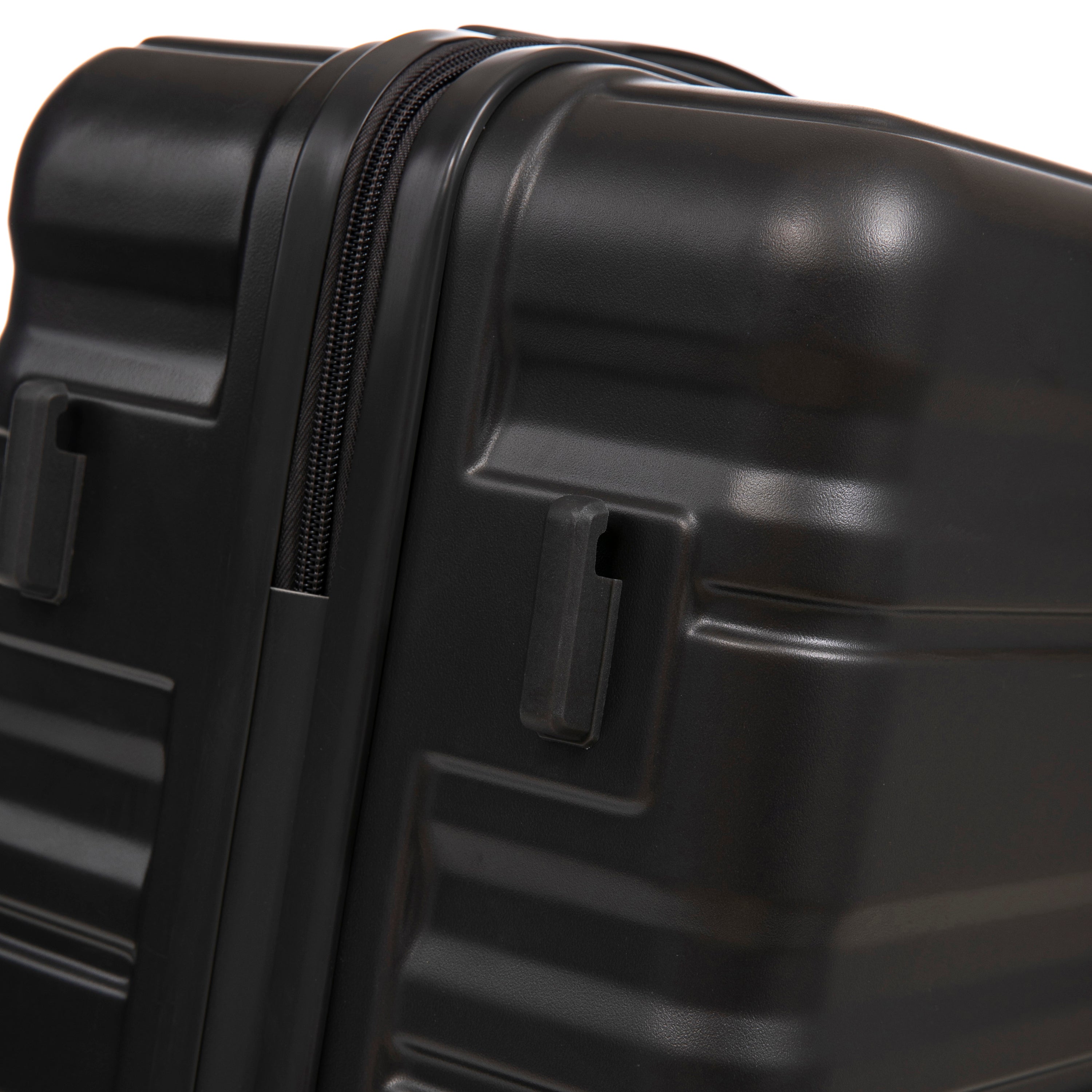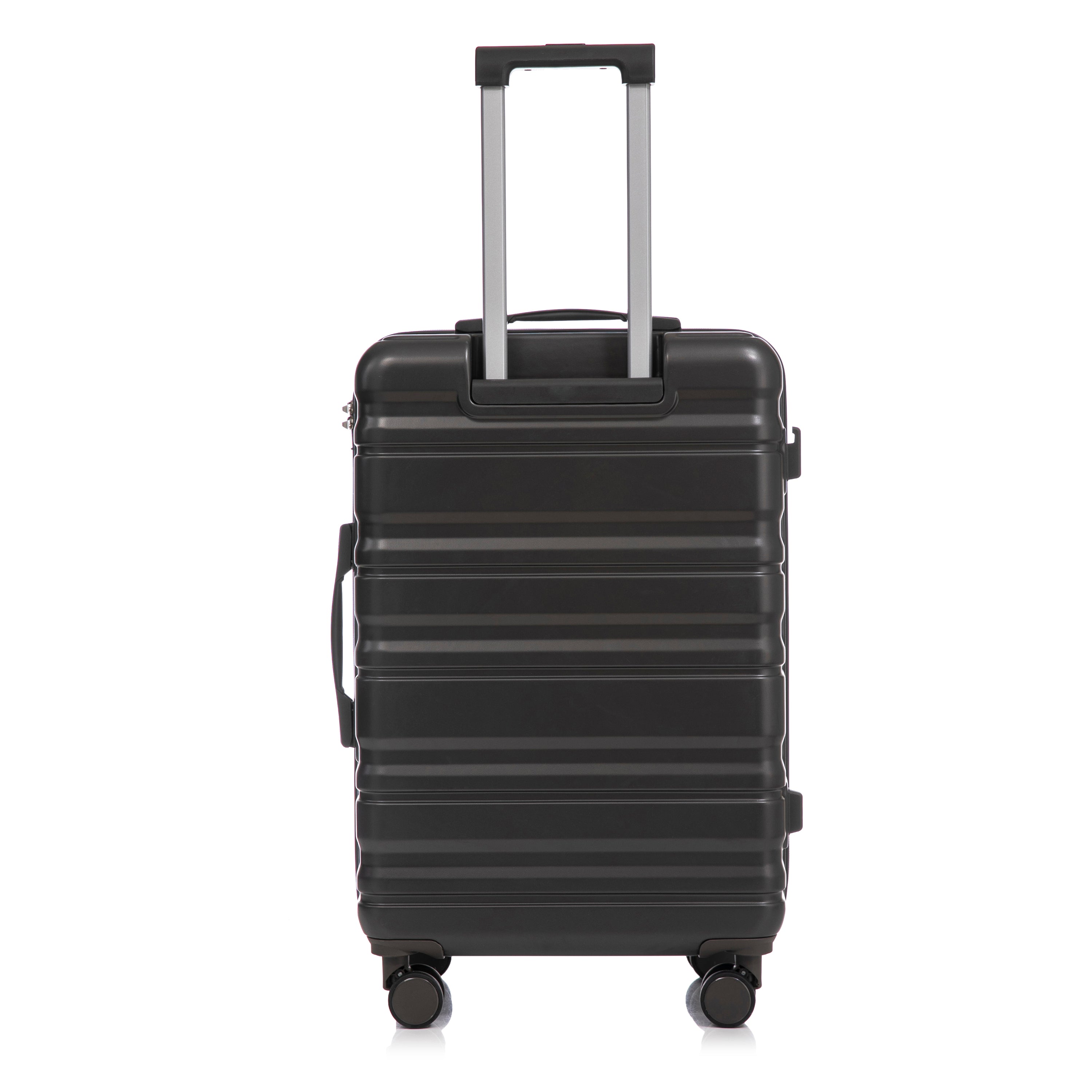The elegant vertical stripe design adds style while increasing resistance to scratches and pressure. Each suitcase includes four molded side feet, allowing it to stand upright and stable, even when laid on its side.