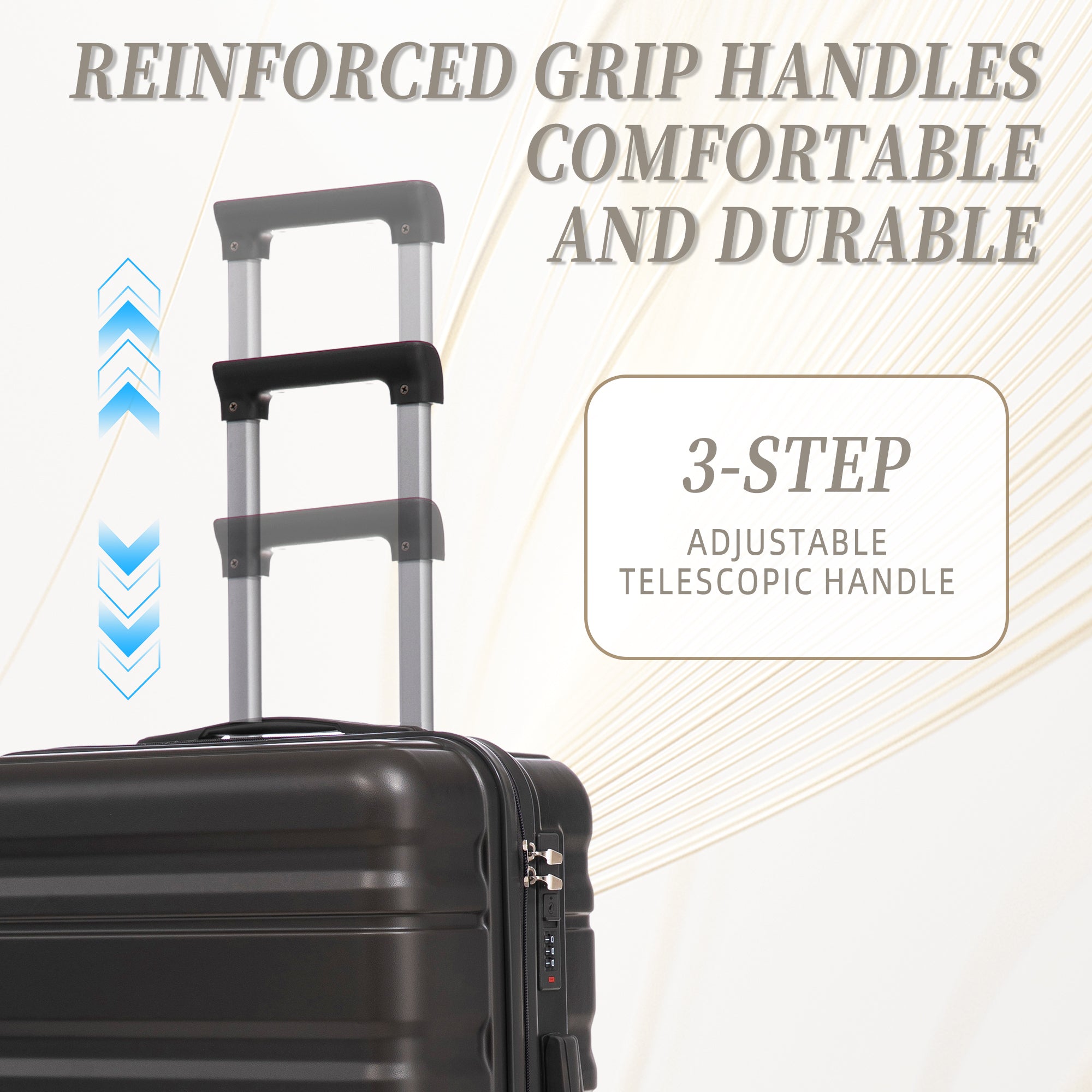 Travel in style and confidence with the 3-piece luggage set, featuring durable ABS construction, smooth spinner wheels, and a matching modern design. Each suitcase is lightweight, waterproof, and built to withstand the demands of frequent travel. With three convenient sizes — 20", 24", and 28" — this set is ideal for family vacations, business trips, or weekend getaways.