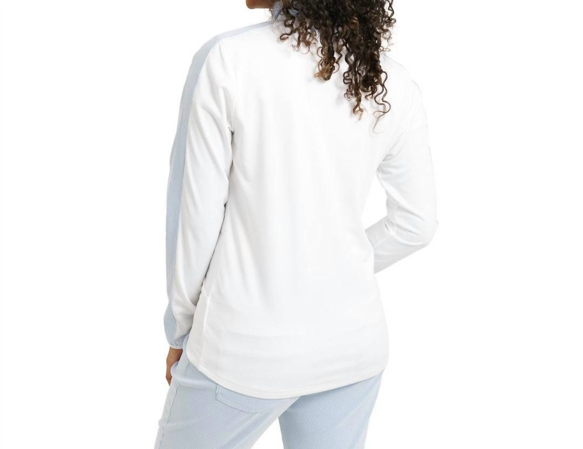 The ultimate cool-girl utility jacket. Meet the Abacus Sportswear US Bovey Midlayer Jacket in white, a stylish utility jacket designed with long sleeves and crafted from 92% polyester and 8% spandex. This full-zip jacket features a breathable and stretchable material that keeps you warm while wicking moisture away with its Drycool function, ensuring lasting comfort. Adorned with white striped contrasts along the sleeves and at the neck, its retro-sporty aesthetic is complemented by functional front pockets and an Abacus logo on the lower front body and back collar. Ideal for versatile wear, its design elevates both casual and active ensembles.