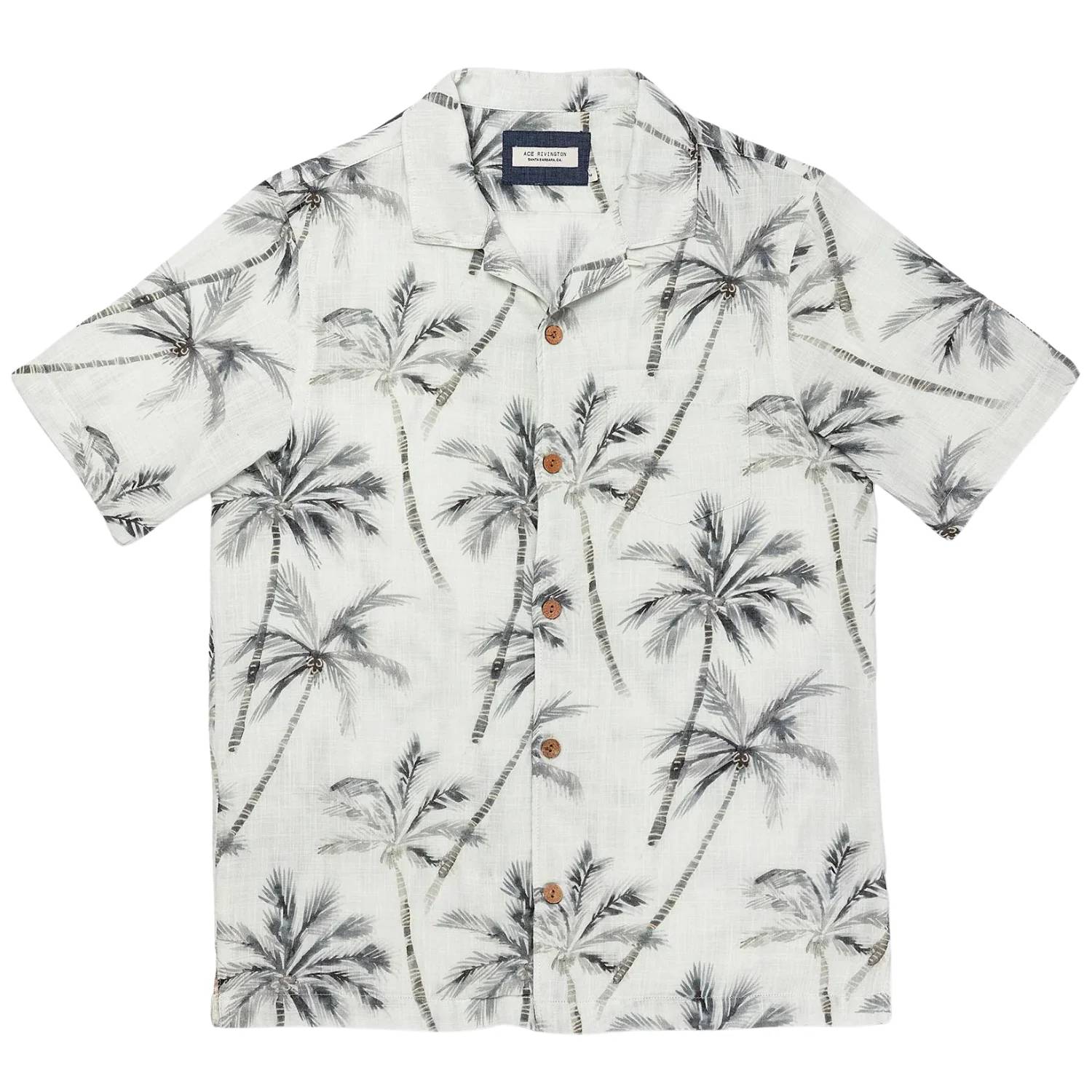 The Ace Rivington Double Gauze Camp Shirt in Water Palm offers a blend of unique artistry and comfort, tailored for the fashion-forward gentleman. With short sleeves and crafted from 100% cotton, this shirt features a camp notched collar and showcases hand-painted artwork by a UK artist. Closure: Button closure with natural coconut buttons. Care: Machine wash and lay flat to dry. The lightweight, breathable fabric is pre-washed to minimize shrinkage, while the straight cut hem and side seam vents provide a relaxed Hawaiian vibe.