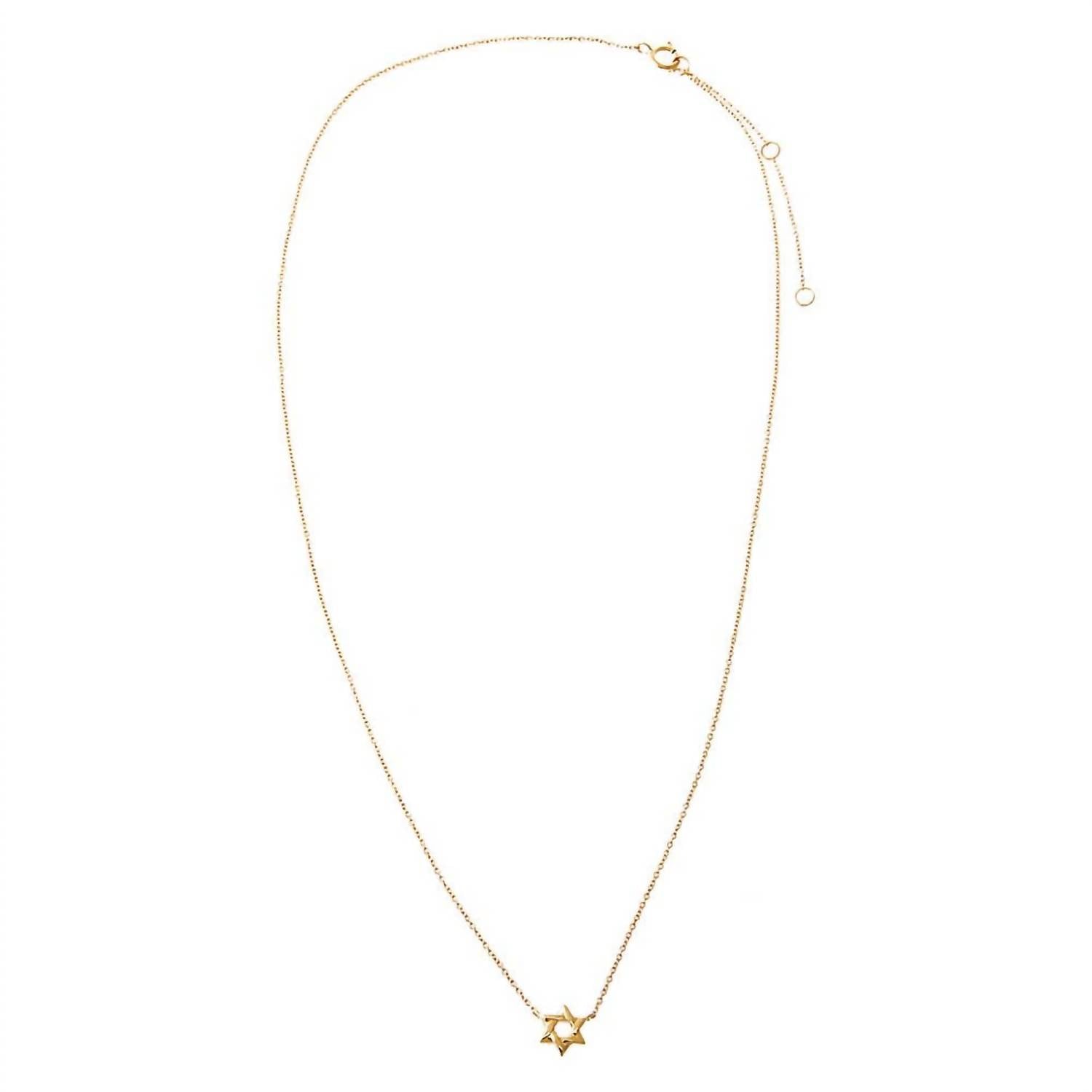 Layer this necklace or wear it on its own. Either way it's a win-win. Adina Eden presents the Mini Solid Star Of David Necklace, a timeless piece crafted from 14K Yellow Gold. The radiant necklace features a delicate star design with a size of 6mm, perfectly complementing its 14"+1"+1" length. Made with care and precision, this elegant necklace is an ideal fashion accessory for any occasion. Elevate your jewelry collection with this beautiful gold piece, designed for both style and sophistication.