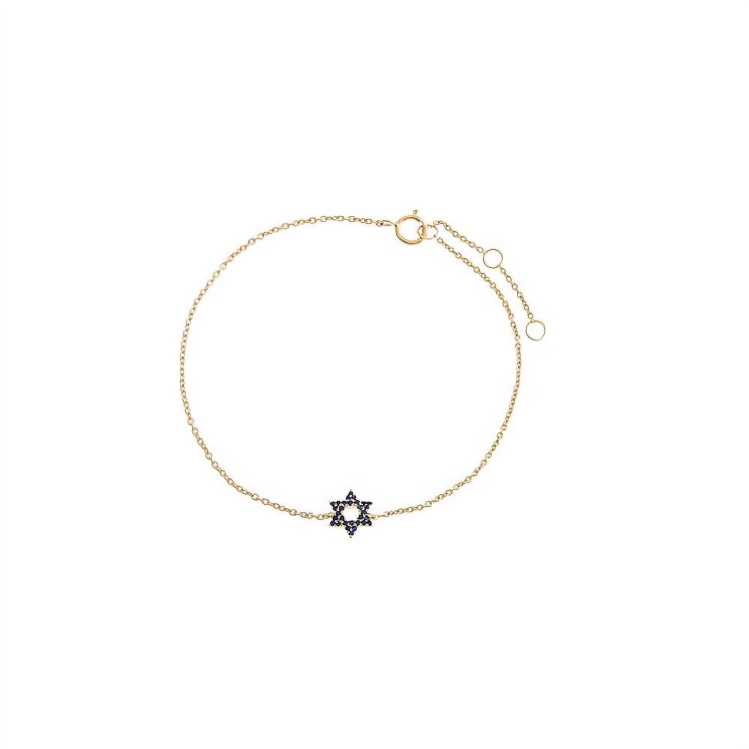 Stacked or solo - you can't go wrong with this bracelet. The Sapphire Star Of David Bracelet by Adina Eden offers a stunning combination of 14K Gold and White Gold adorned with clear and sapphire blue round brilliant-cut natural diamonds. Featuring a star size of 9 MM, this fashionable piece is crafted from goldtone material, making it both exquisite and versatile. It has a product length of 6 inches with a 2-inch extender, allowing for a comfortable fit. Ideal for chic elegance, this bracelet is a dazzling addition to any jewelry collection.