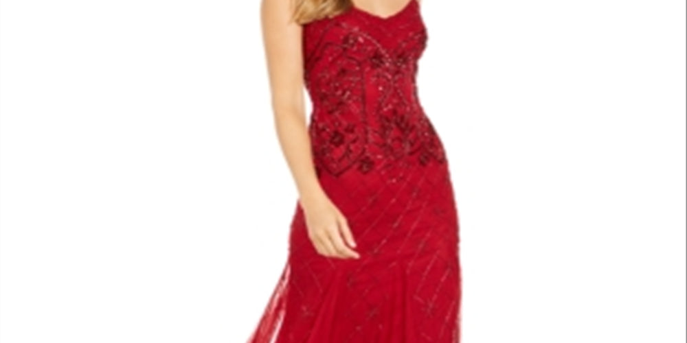 make this your siren song; adrianna papell's whimsical mermaid gown| a total stunner in shimmery crimson
