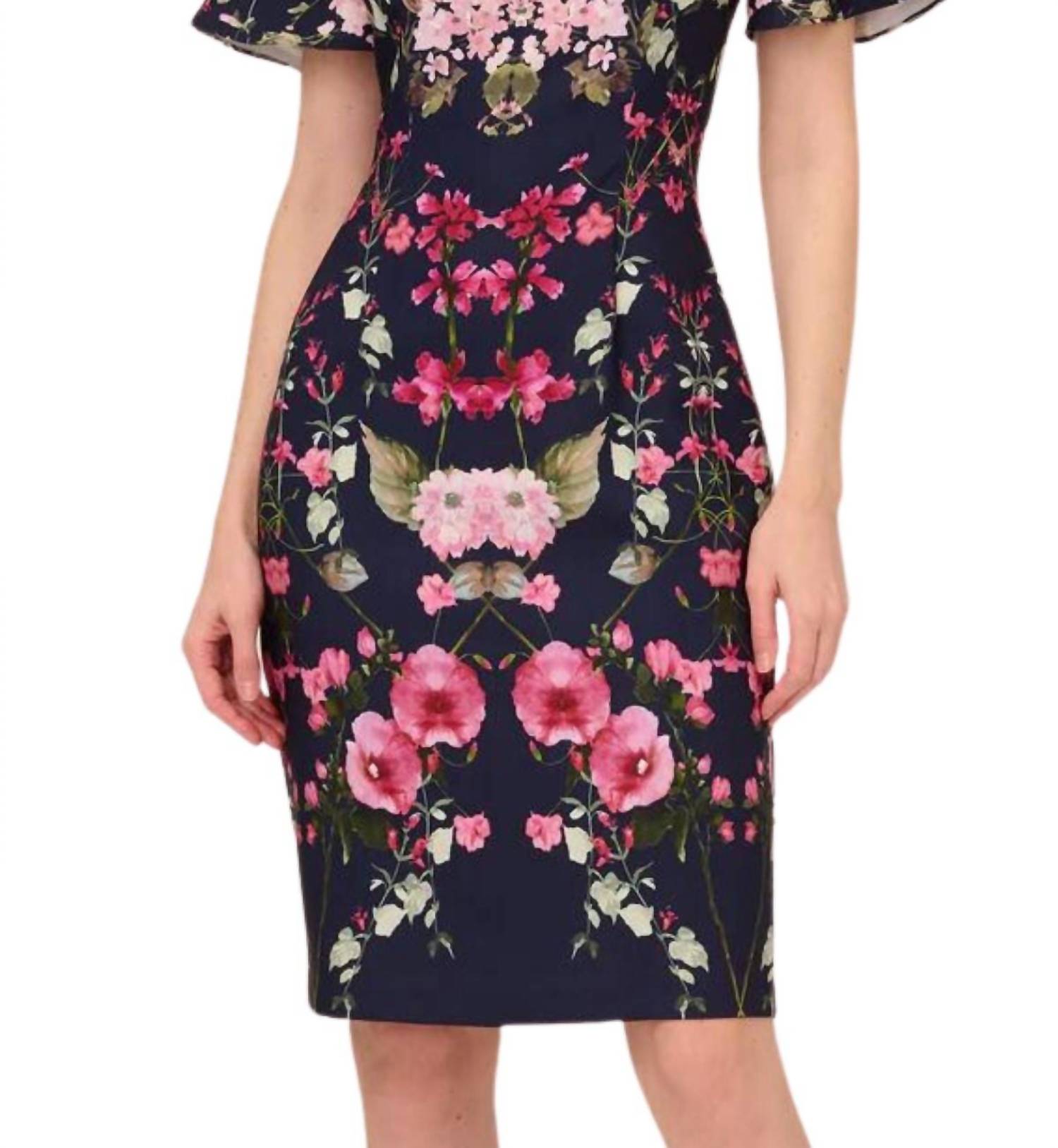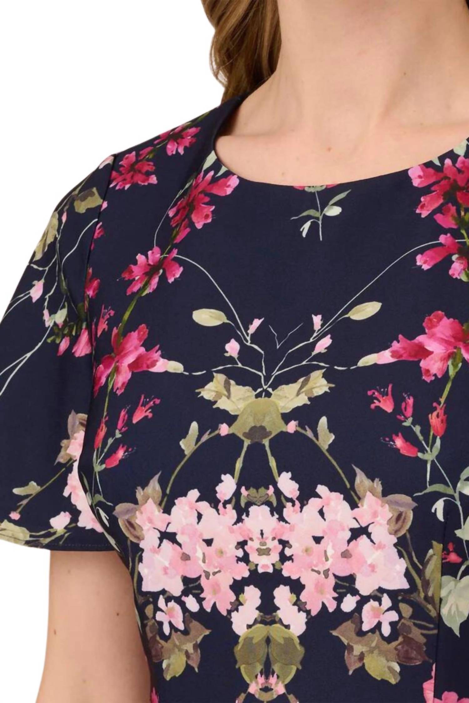 Adrianna Papell - Floral Print Crepe Midi-length Sheath Dress