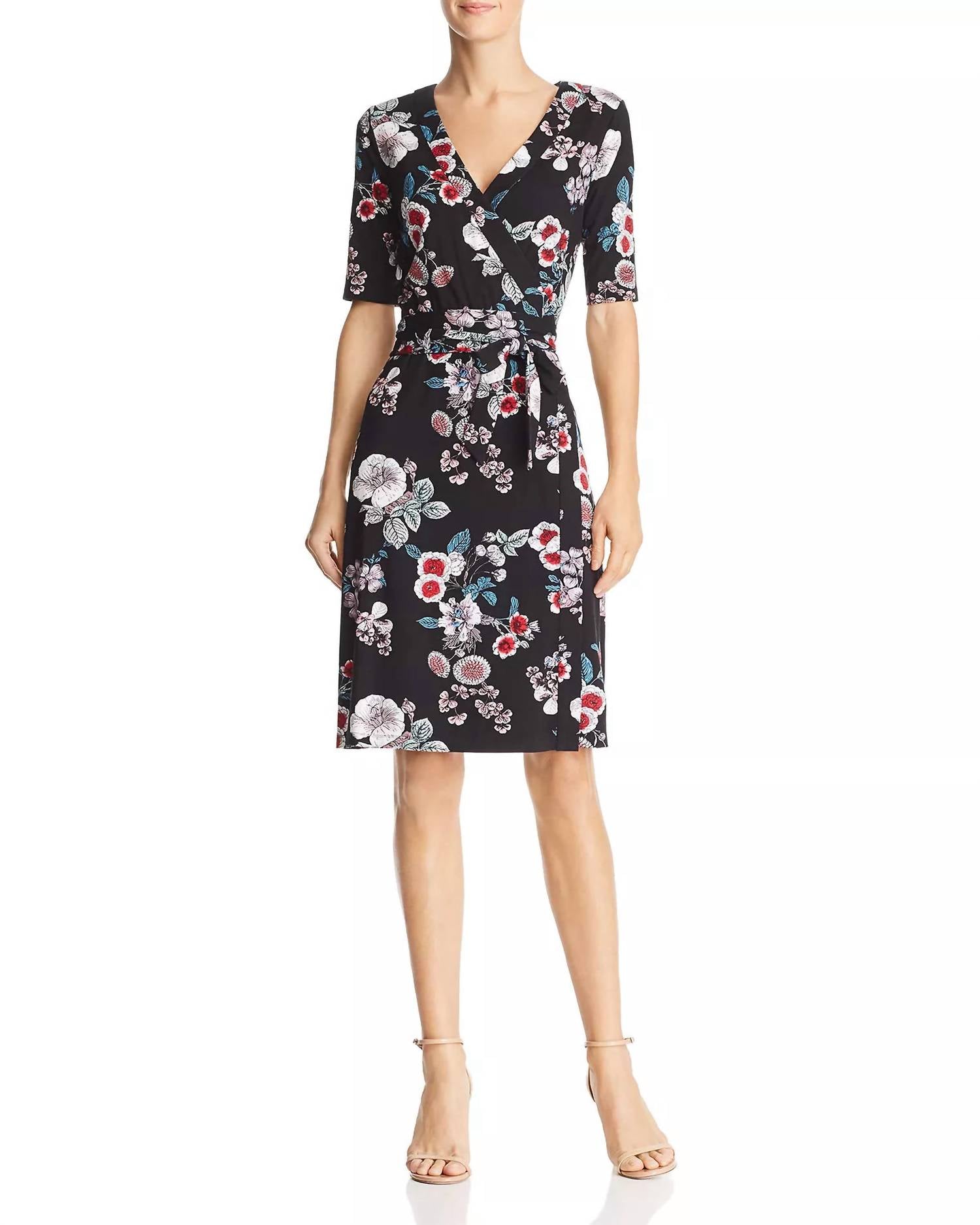 Adrianna Papell - Side Tie Side Floral Faux Wrap Dress
