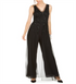 Adrianna Papell Women's Embellished Wide Leg Jumpsuit Black Size 14 Petite