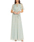 Ties at the waist and a keyhole at the neckline lend a special touch to Adrianna Papell's full-length floral jacquard gown. | Approx. 62 long from center back neck to hem. Length is based on size 4 and varies 1/4 between sizes| Floor-length formal dress| Jacquard; Textured and structured| Round neckline; Fit & flare silhouette| Back zipper closure| Flutter sleeves