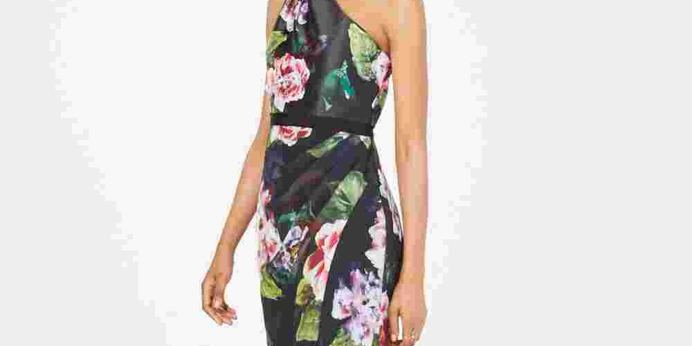 Adrianna Papell Women's Floral Print One Shoulder Gown Black Floral Size 12