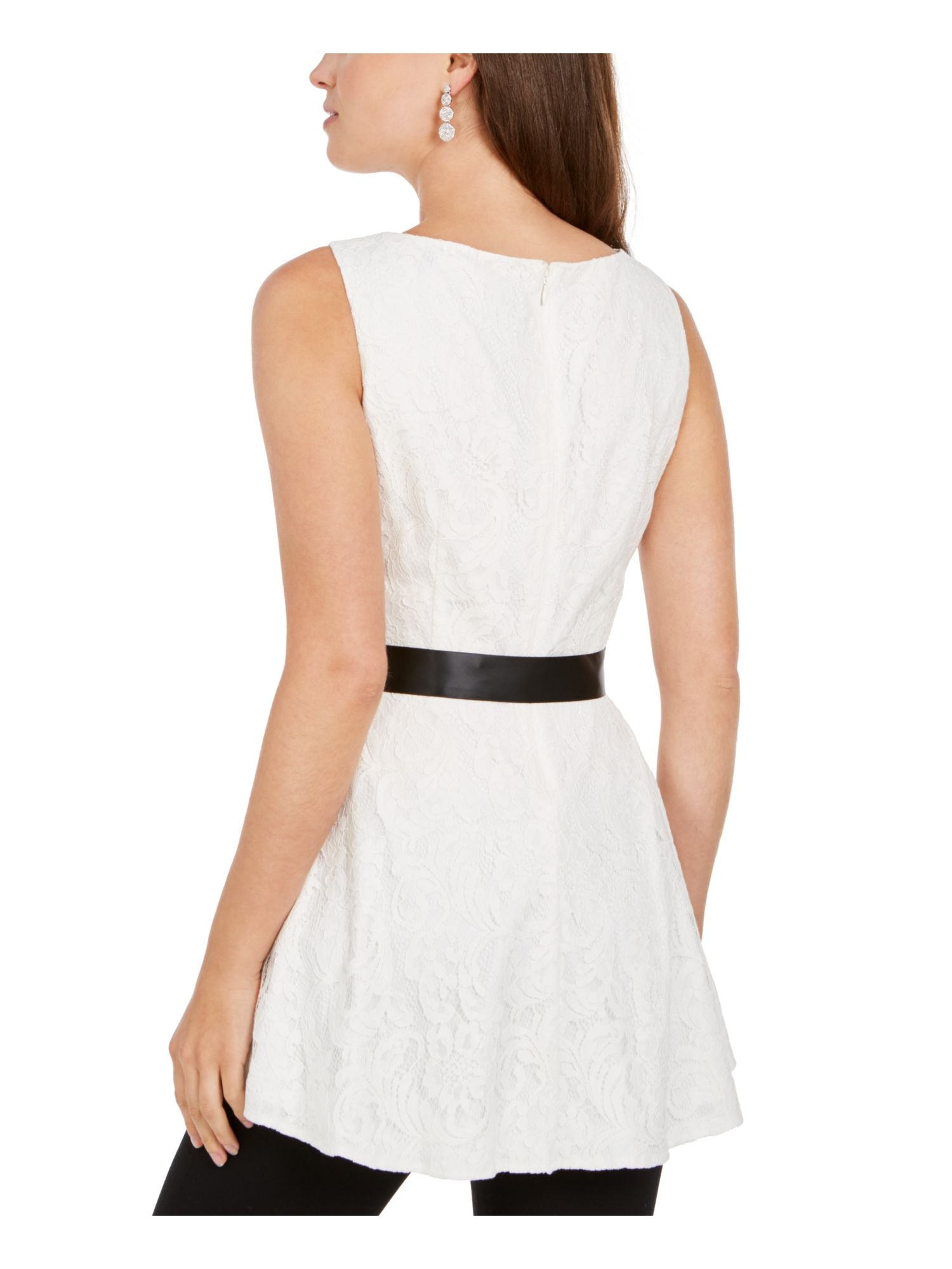 Adrianna Papell Women's Lace Tie Sleeveless Jewel Neck Peplum Top White Size 14