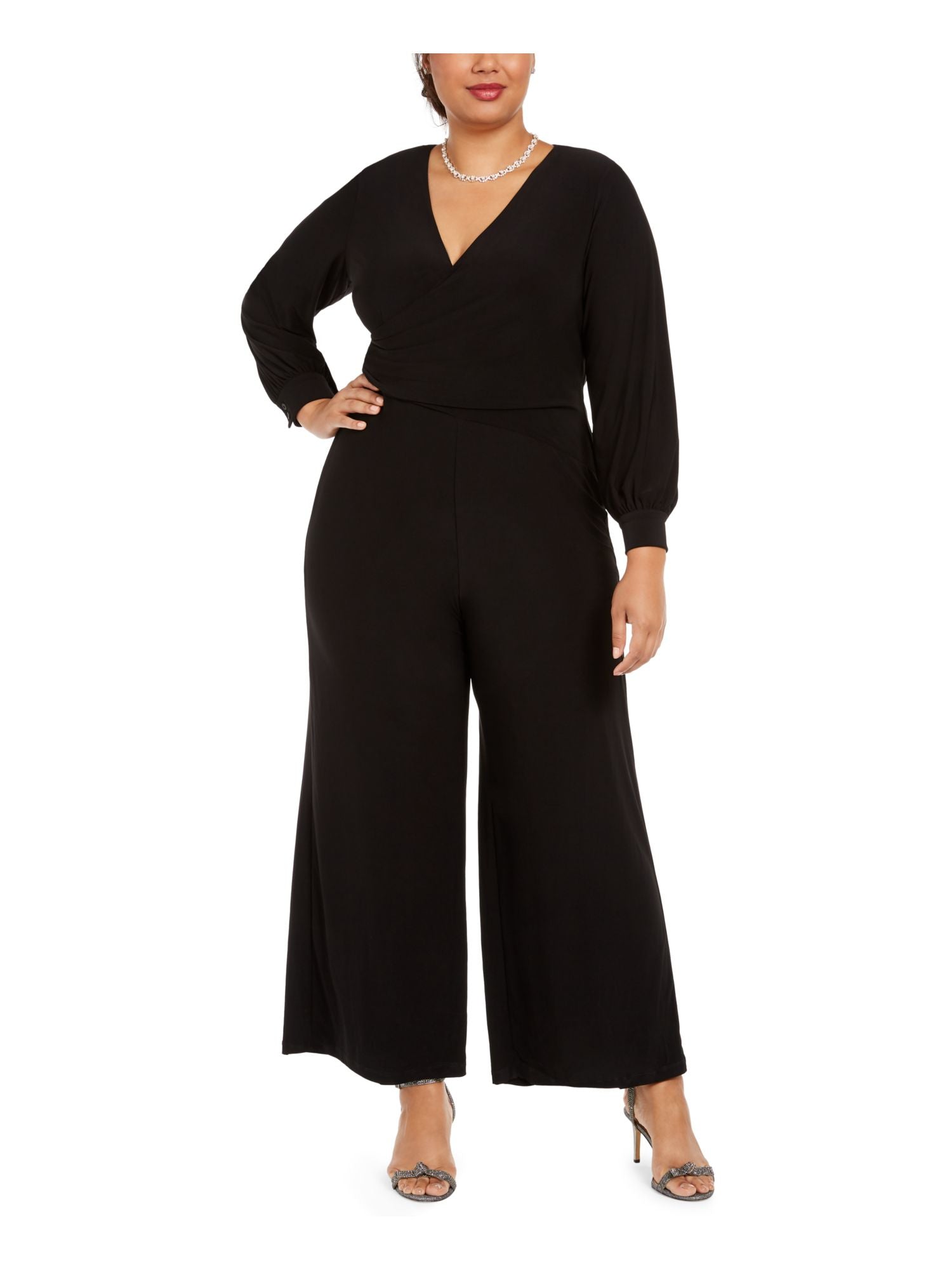 ADRIANNA PAPELL Women's Long Sleeve Wide Leg Evening Jumpsuit Plus Black Size 24W