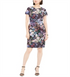 Adrianna Papell Women's Zippered Floral Short Sleeve Jewel Neck Above the Knee Sheath Party Dress Black Size 12