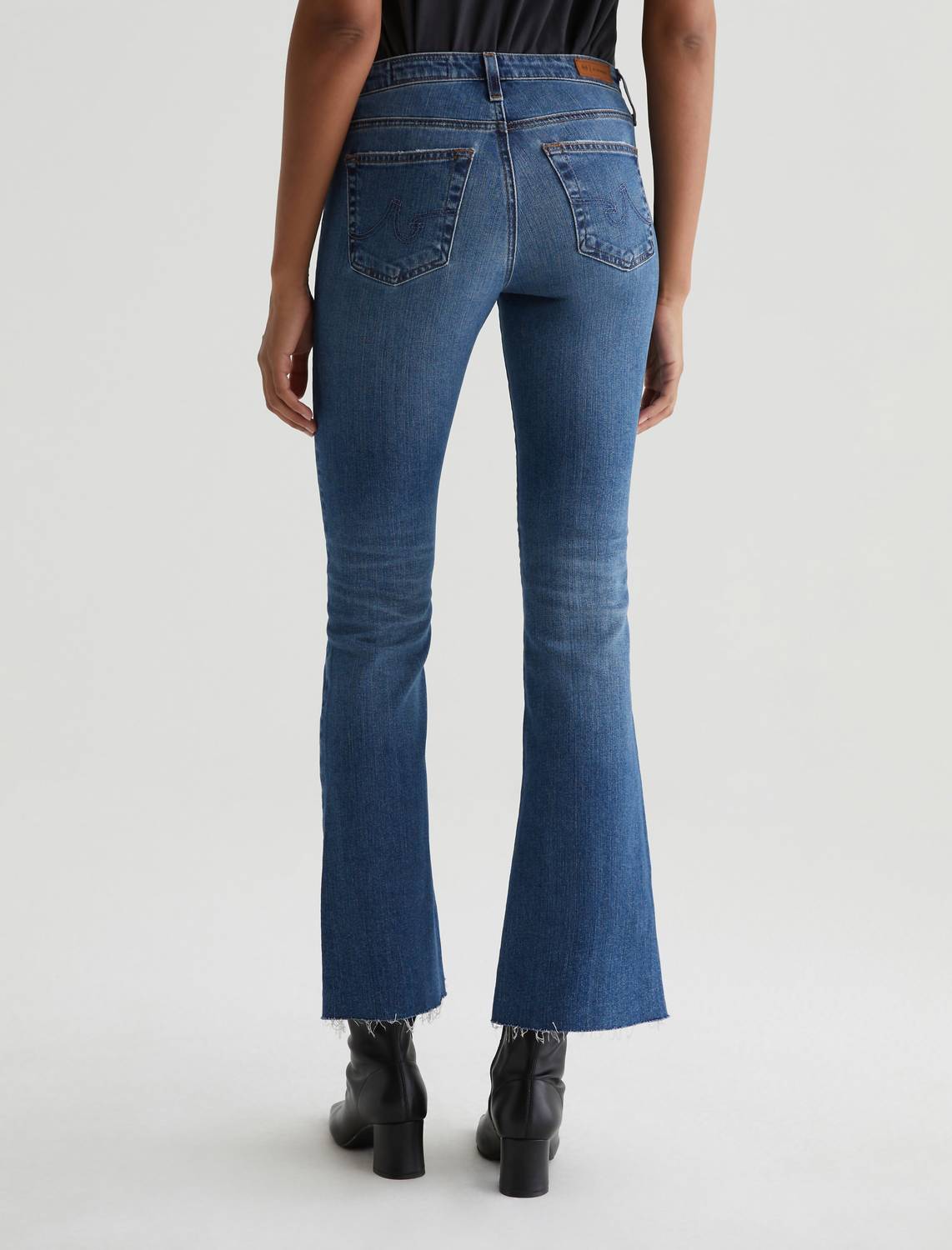 Just add boots! Embrace timeless style with AG Jeans' Angel Low-rise Boot Jeans in a sophisticated Blue hue. Crafted from a comfortable Cotton Blend with a touch of stretch, these jeans showcase a flared leg and slim fit for a flattering silhouette. They feature a zip closure and classic five-pocket design, complete with an AG-ed™ dark indigo wash that gives a vintage 15-years-worn look. With details like raw hems, a mid-rise measuring 8.5 inches, and a 31-inch inseam, these jeans are perfect for travel or workwear. Care instructions include machine wash and tumble dry.