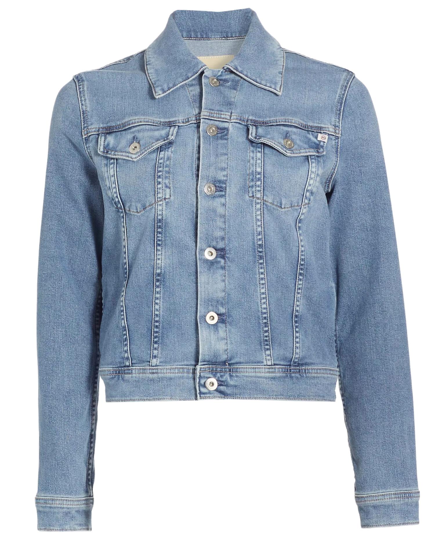 Classic, cool and works with almost any outfit choice. Meet the Robyn Denim Button-front Jacket by AG Jeans, a stylish choice for women looking to make a statement in any setting. Featuring long sleeves and a spread collar, this jacket offers a perfected fit with its button-front placket and chest button-through flap pockets, providing both style and functionality. Crafted from AG’s exclusive blend of 56% cotton, 19% modal, 18% lyocell, 6% polyester, and 1% elastane, it promises comfort and a luxurious feel that softens with wear. Measuring approximately 20 inches from shoulder to hem and imported for your style convenience, care for your jacket is effortless with machine wash and tumble dry instructions. The model is 5'10" and wearing a US size 4, keep in mind this item runs large.