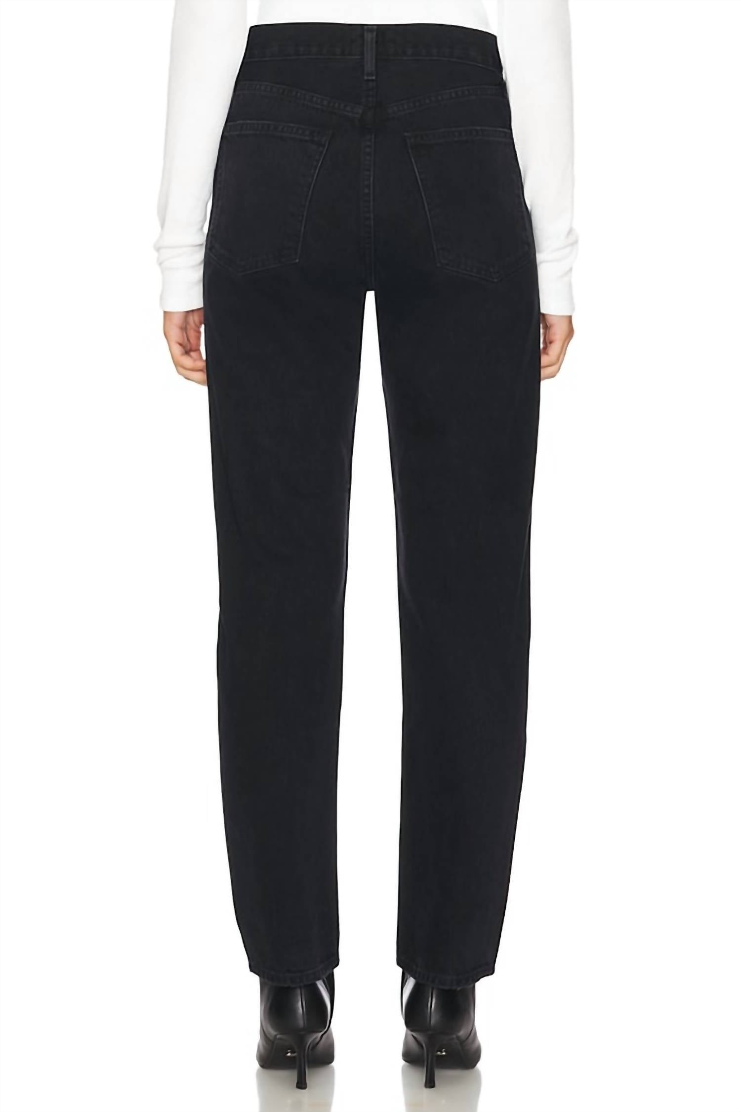 Step back into timeless style with the 90's Pinch Waist Jeans by AGOLDE, designed for the modern woman. These high-rise, straight-leg jeans in the color Fuse are crafted from solid cotton, offering both comfort and a streetwear edge. Made in the USA, they feature a button fly closure and five-pocket styling, complemented by intentionally destroyed details for an effortlessly chic look. Care instructions include machine wash, and the jeans narrow from 41 cm at the knee to 36 cm at the leg opening.