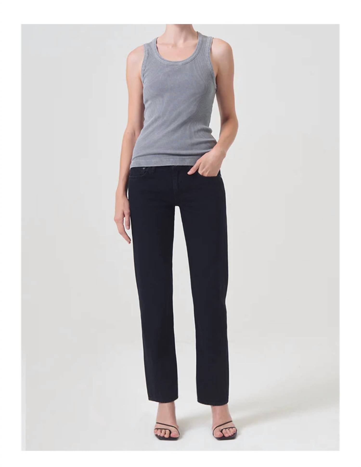 An update to the classic five-pocket fit. Featuring a low-rise waist with our signature full-length straight leg, the Amber creates an easy and flattering silhouette when paired with a body-skimming tank.