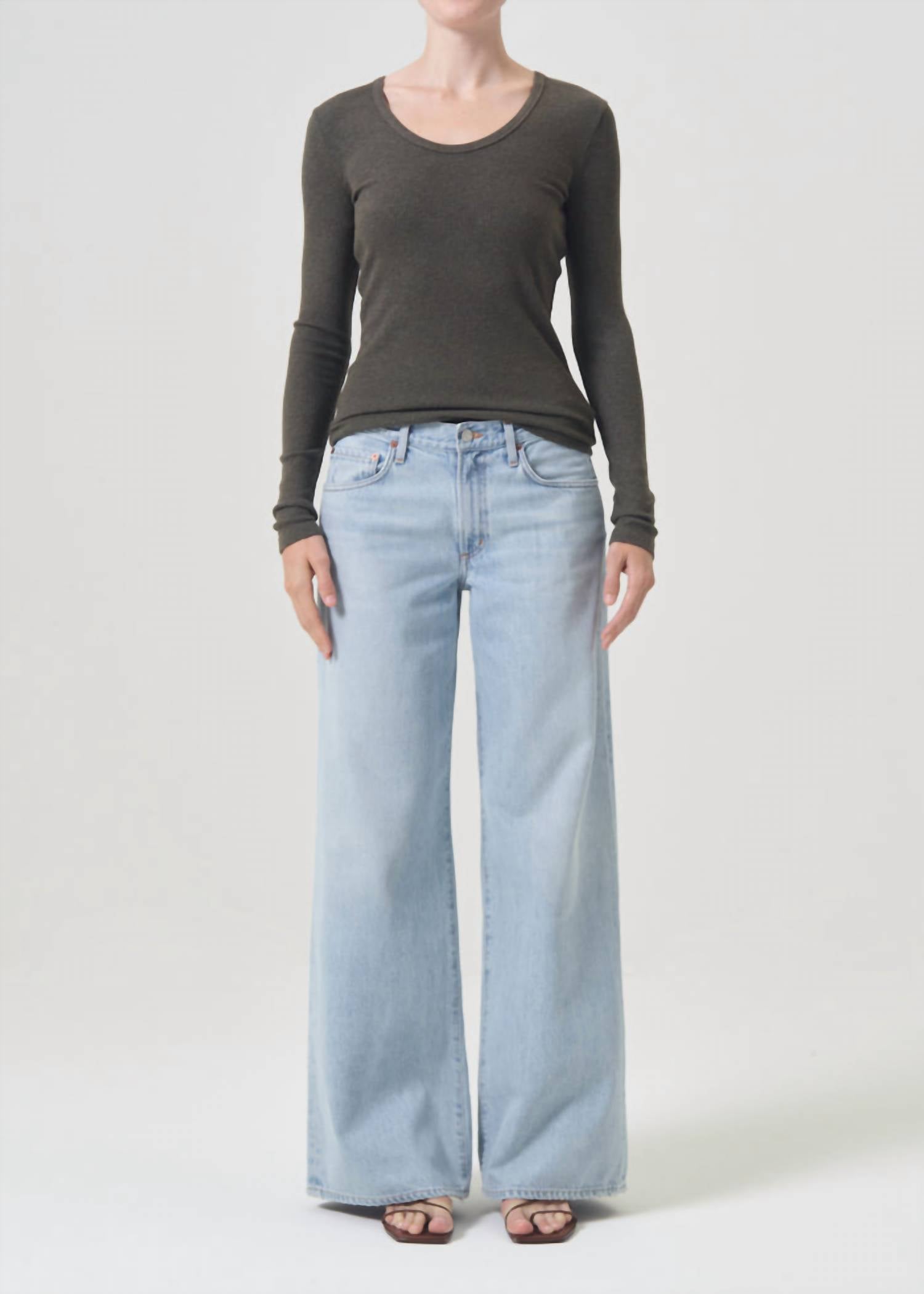 A long sleeve top you can wear with denim, skirts, well... just about anything! Scoop Neck Tee. Long sleeves. Pull-on style. Machine wash cold. 50% Polyester 32% Cotton 18% Rayon.