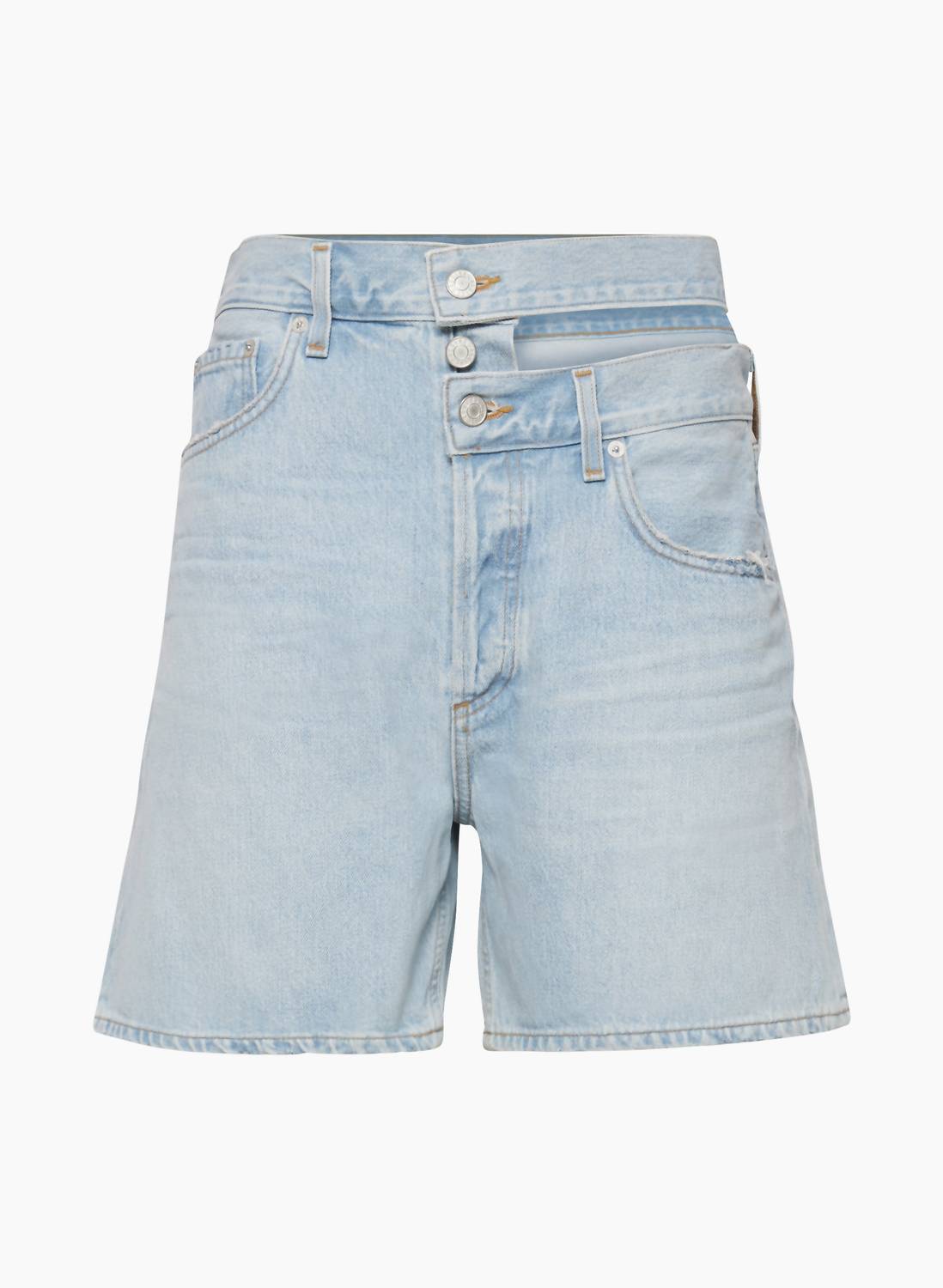 Jean shorts so versatile, you can literally wear them with anything.AGOLDE's Broken Waistband shorts are cut from rigid denim. This style features a high-rise waist with an eye-catching cut-out side. Belt loops. Five-pocket style. Zip and button fly. 100% cotton. Machine wash. Made in the USA