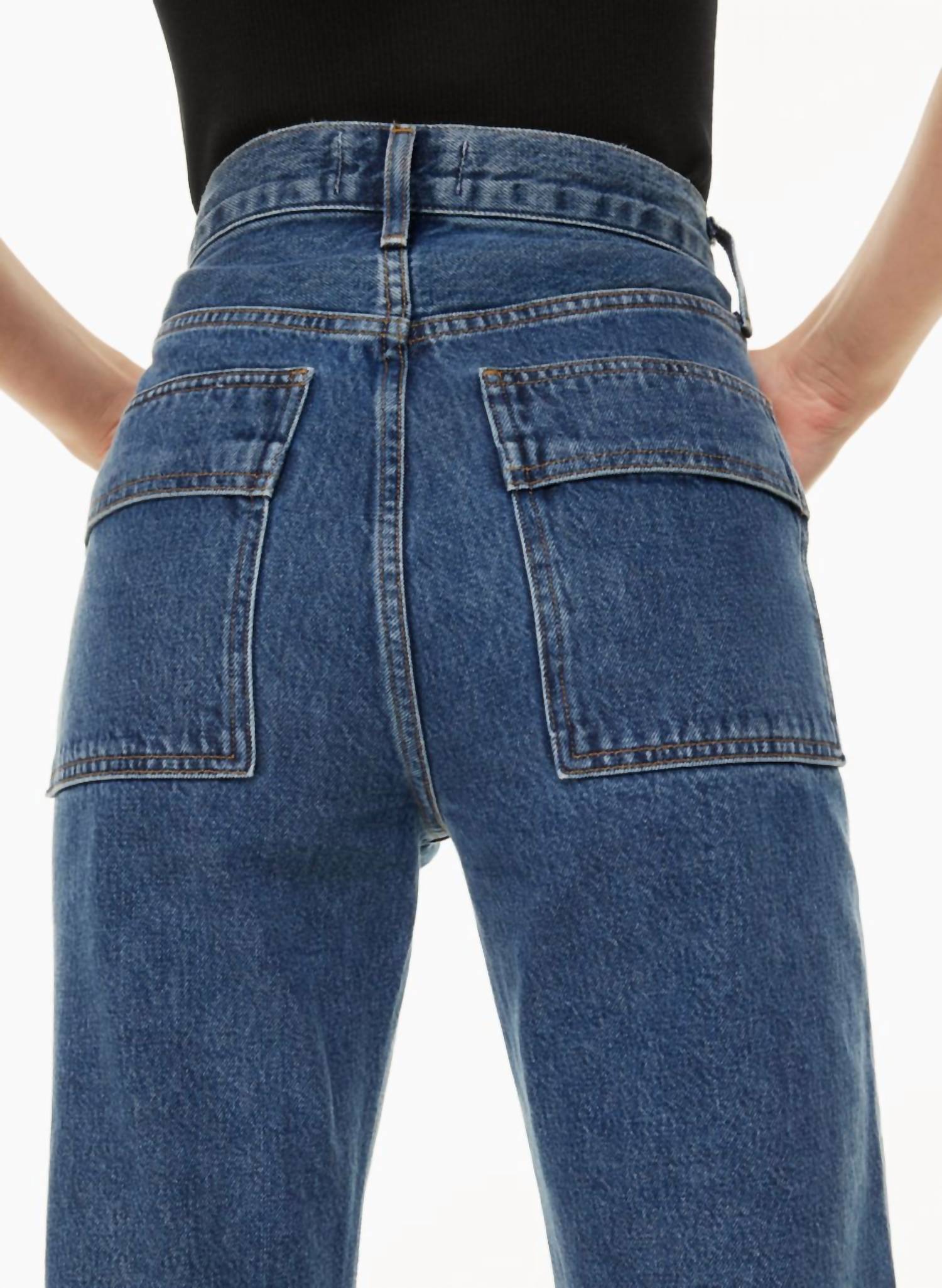 Relaxed straight leg. High-rise waist. Utilitarian inset pockets.. Soft, non-stretch organic cotton with subtle drape. seam detailing down the legs and a finished hem. 100% Organic CottonFit is true to size. Closure: Zip Fly. Rise: 12". Inseam: 28 1/2". Leg Opening: 15 1/4". Model is 5'10" and is wearing a Size 27. Machine wash cold inside out with like colors. Do not bleach. Tumble dry low.
