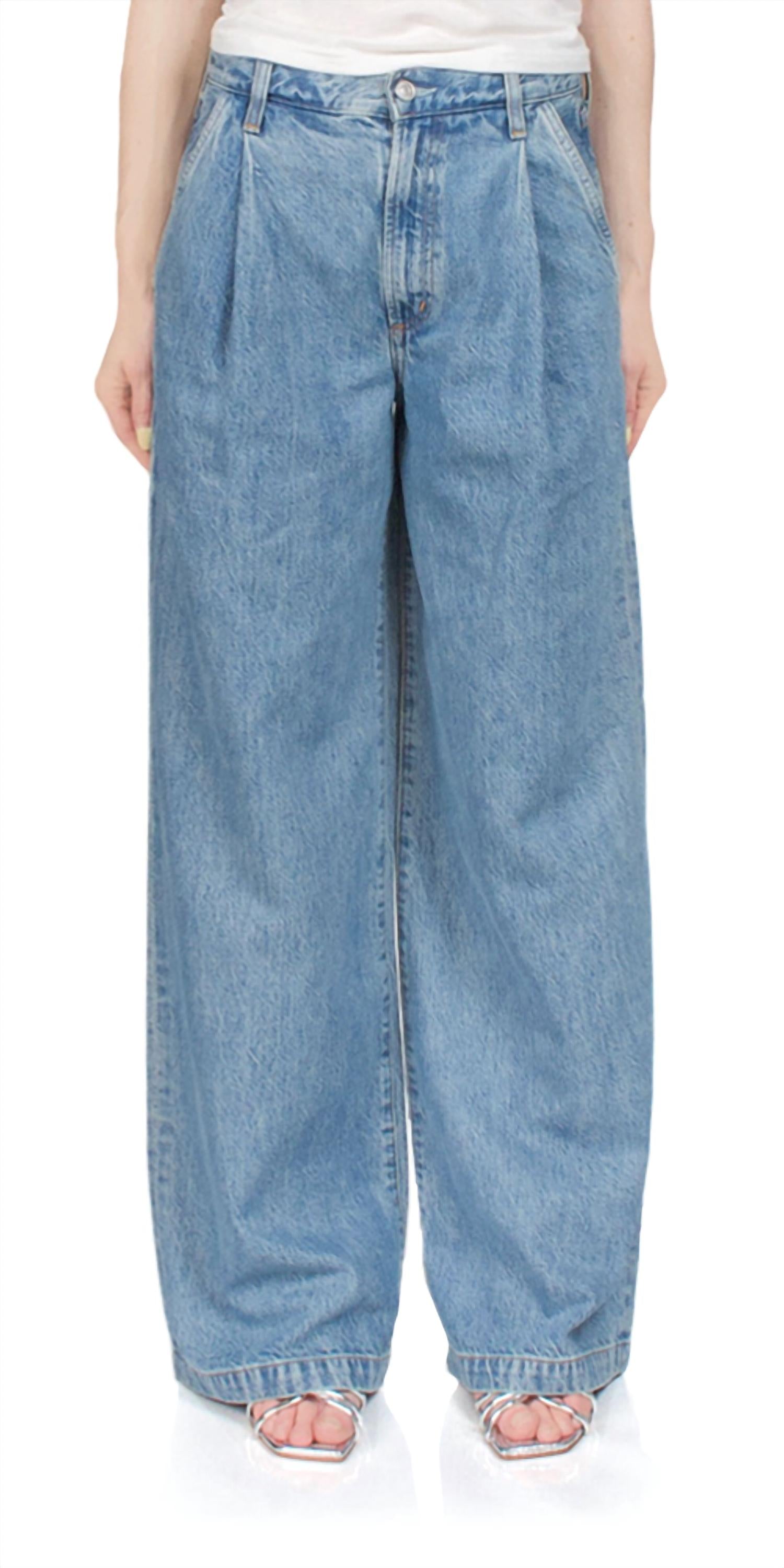 Discover the Ellis Wide Leg Trouser Pants by AGOLDE, expertly crafted for a modern and relaxed fit. These trousers feature a mid-weight composition of 70% Lyocell and 30% Pre Consumer Recycled Cotton, offering a perfect blend of structure and drape. Made in the US, this style boasts a low-slung, wide leg fit with a rise of 12 1/2 inches, and an inseam of 32 inches, finished with a button closure. Care instructions include machine washing and tumble drying.