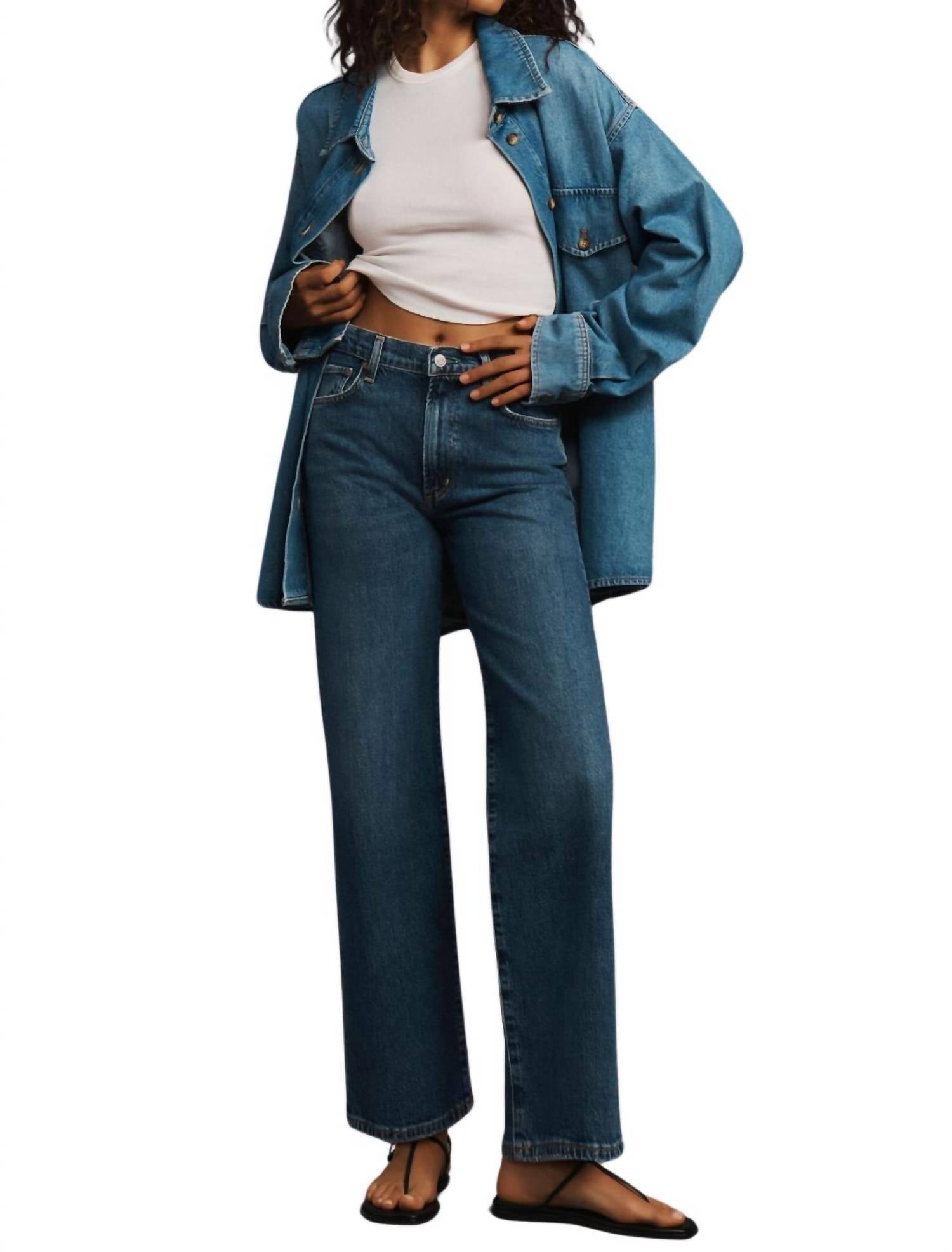 Just as cute as they are comfortable. Introducing the Harper Jean by AGOLDE, a perfect blend of comfort and style with a subtle wide-leg silhouette. This mid-rise design in the Fix color features a relaxed fit and 5-pocket styling, making it versatile for any occasion. With a composition of 88% Cotton, 11% Post Consumer Recycled Cotton, and 1% Elastane, it offers both flexibility and a flattering fit. Measured with a rise of 11.25 inches, an inseam of 32 inches, and a leg opening of 19.5 inches, it's finished with a convenient button and zip fly closure. Care instructions recommend machine washing.