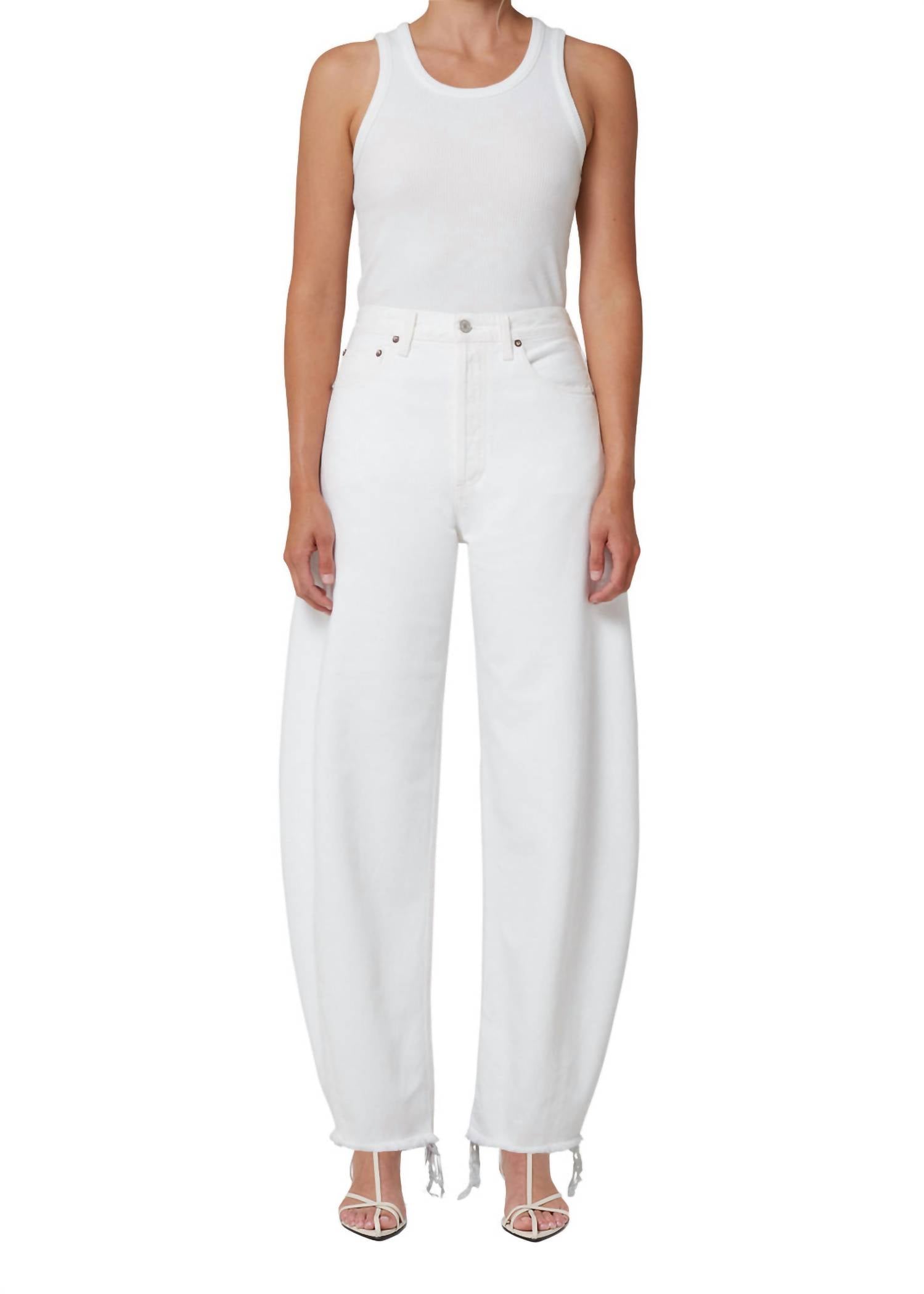 Fit to perfection, we love these high-waist jeans and you will too. Introducing the Luna Pieced Jean by AGOLDE, a striking streetwear piece in Element, perfect for infusing vacation vibes into your wardrobe. These relaxed fit, high-rise jeans are crafted from 100% organic cotton and feature a playful blend of different denim shades with a tapered leg design. Enjoy the convenience of pockets and a secure button closure. Care instructions include machine wash and tumble dry.