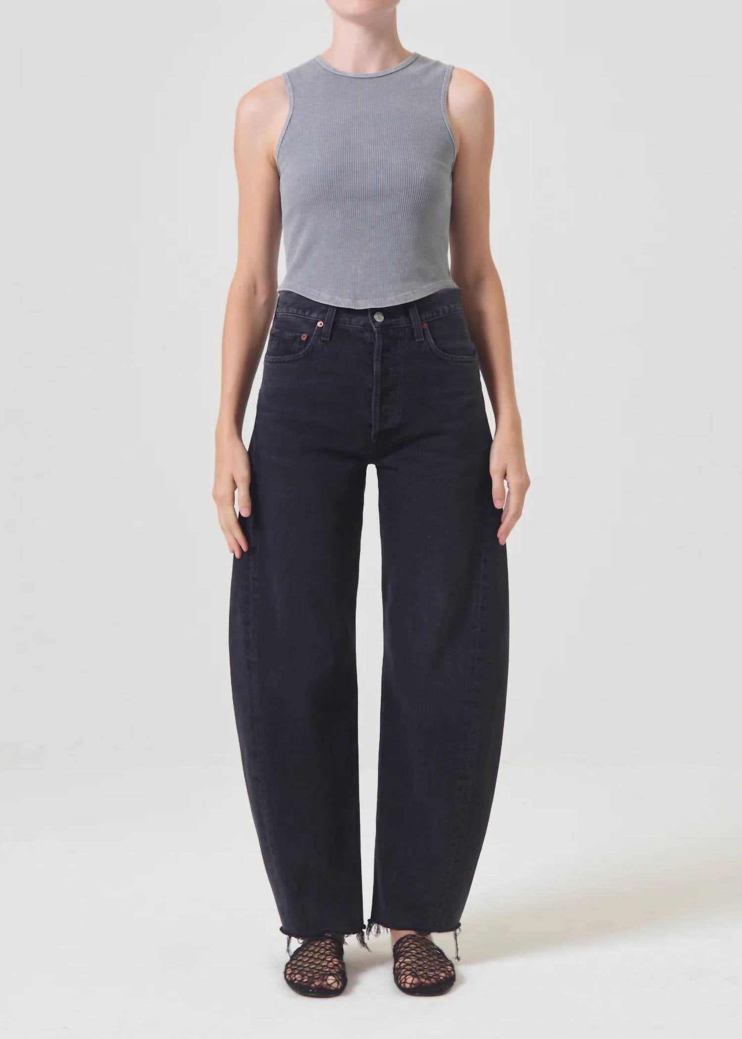 Fit, fabric and functionality. This tank top checks all the boxes. Experience the perfect blend of comfort and style with the Nova Tank Top by AGOLDE, featuring a modern Mirror Ball hue. This sleeveless design is crafted from 49% organic cotton, 49% lyocell, and 2% spandex, ensuring a cozy fit with just the right amount of stretch. Made in the USA, this ribbed jersey tank top offers a pull-on closure and a crewneck, making it an easy addition to your fall wardrobe. Care for this textured piece is simple with machine wash instructions.