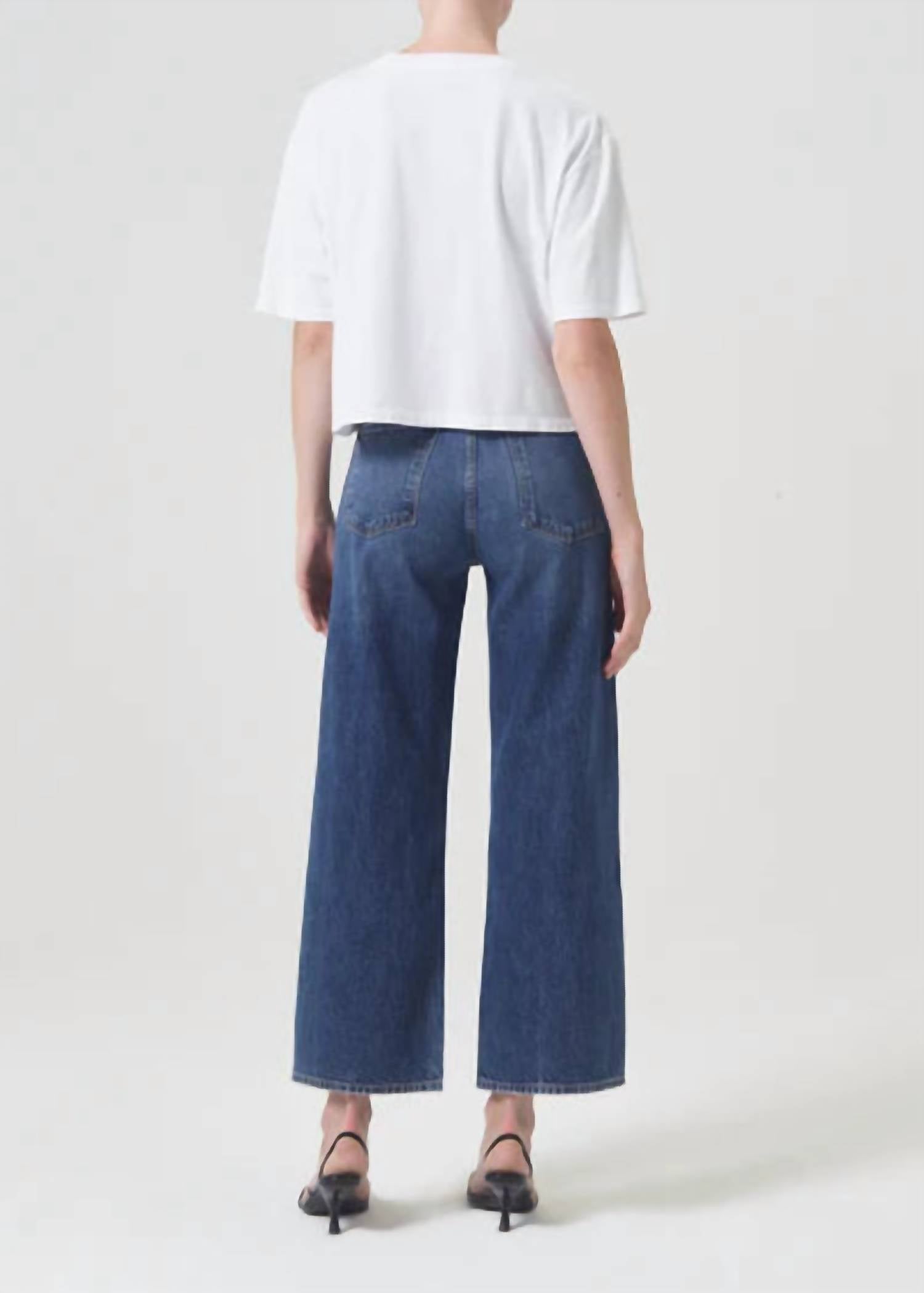 Just as cute as they are comfortable. Introducing the Ren High-rise Wide Leg Jeans by AGOLDE, a chic addition to your wardrobe in the sophisticated Control color. These jeans boast a high-rise waist and a relaxed fit through the hips, leading into a wide leg silhouette with a 27 1/2" inseam and a 19 1/2" leg opening. Crafted from 100% regenerative cotton, this vintage-inspired piece features a button fly closure and showcases a dark indigo wash with heavy fading and whiskering. Care for your new favorite jeans by machine washing cold and tumble drying low.