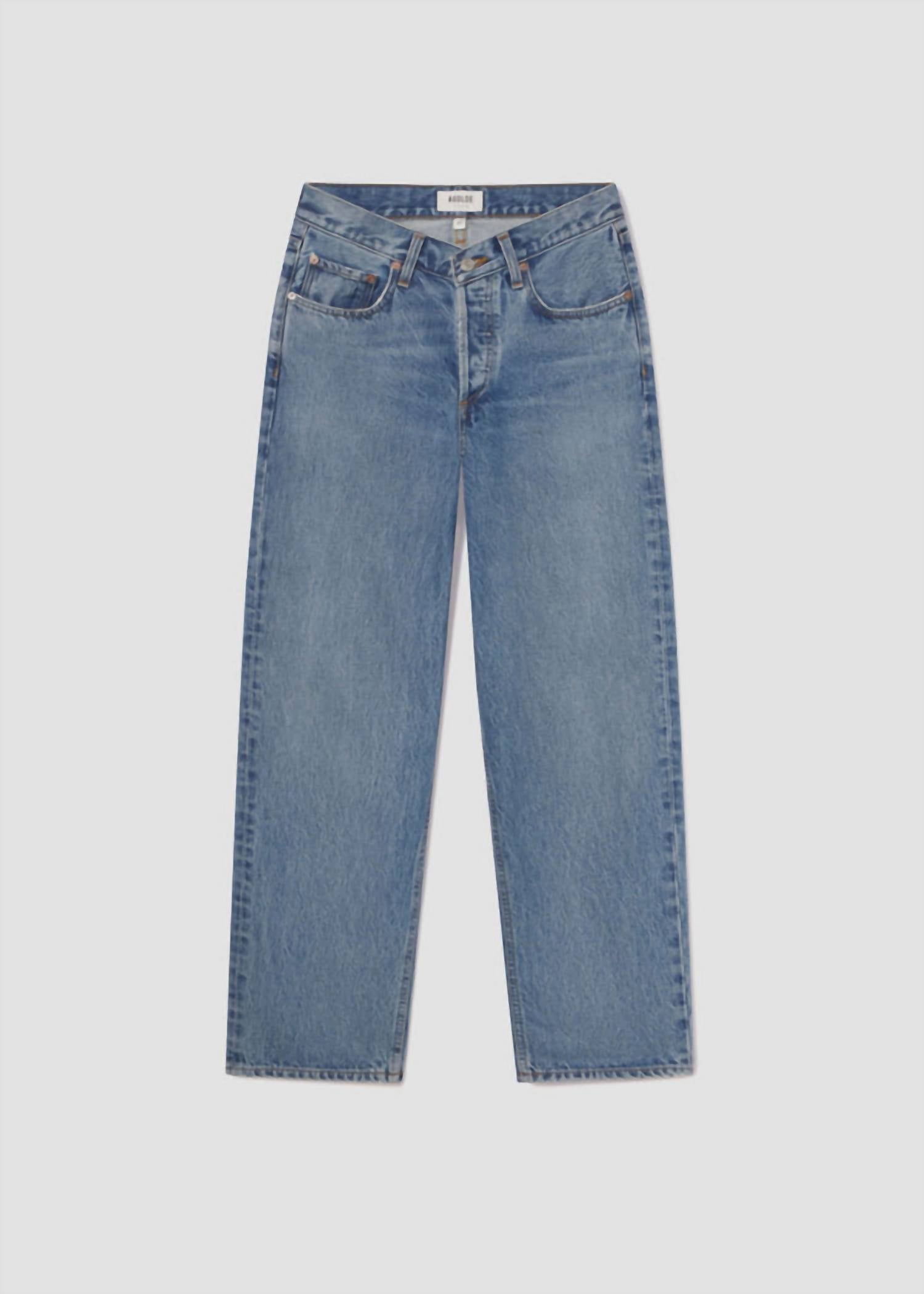Pair these straight leg jeans with flats, sandals or even heels! You can't go wrong. Elevate your denim collection with AGOLDE's V-Waist Baggy Jeans in Fairway, a chic take on casual comfort. Designed with a sharp V-front waistband, these jeans feature a mid-rise and full-length straight leg silhouette, adding a modern touch to the classic boyfriend fit. Made from 100% regenerative cotton, they promise unparalleled comfort and sustainability with a 30" inseam and a 10.5" rise. Closure type is a button fly, and for care, simply machine wash and tumble dry. Perfectly crafted in Turkey, these jeans are an effortless choice for any wardrobe.
