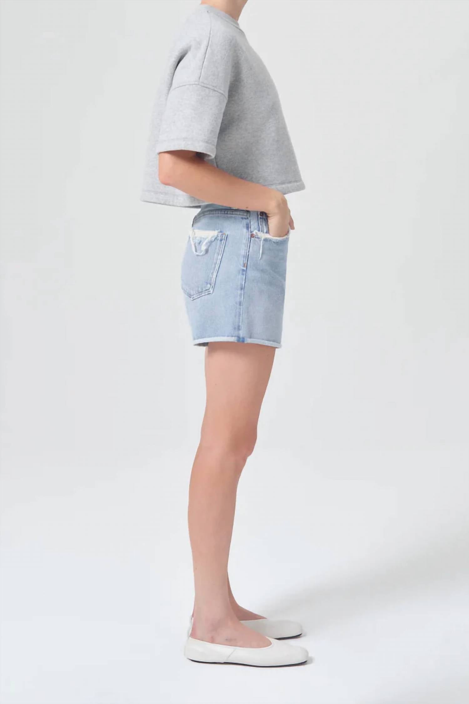 Featuring a waist accentuating ultra-high rise and a fitted silhouette through the hips. Crafted in our signature zero stretch cotton with a side slit detail, these vintage-inspired shorts are a denim drawer staple. Machine washable and tumble dry low.