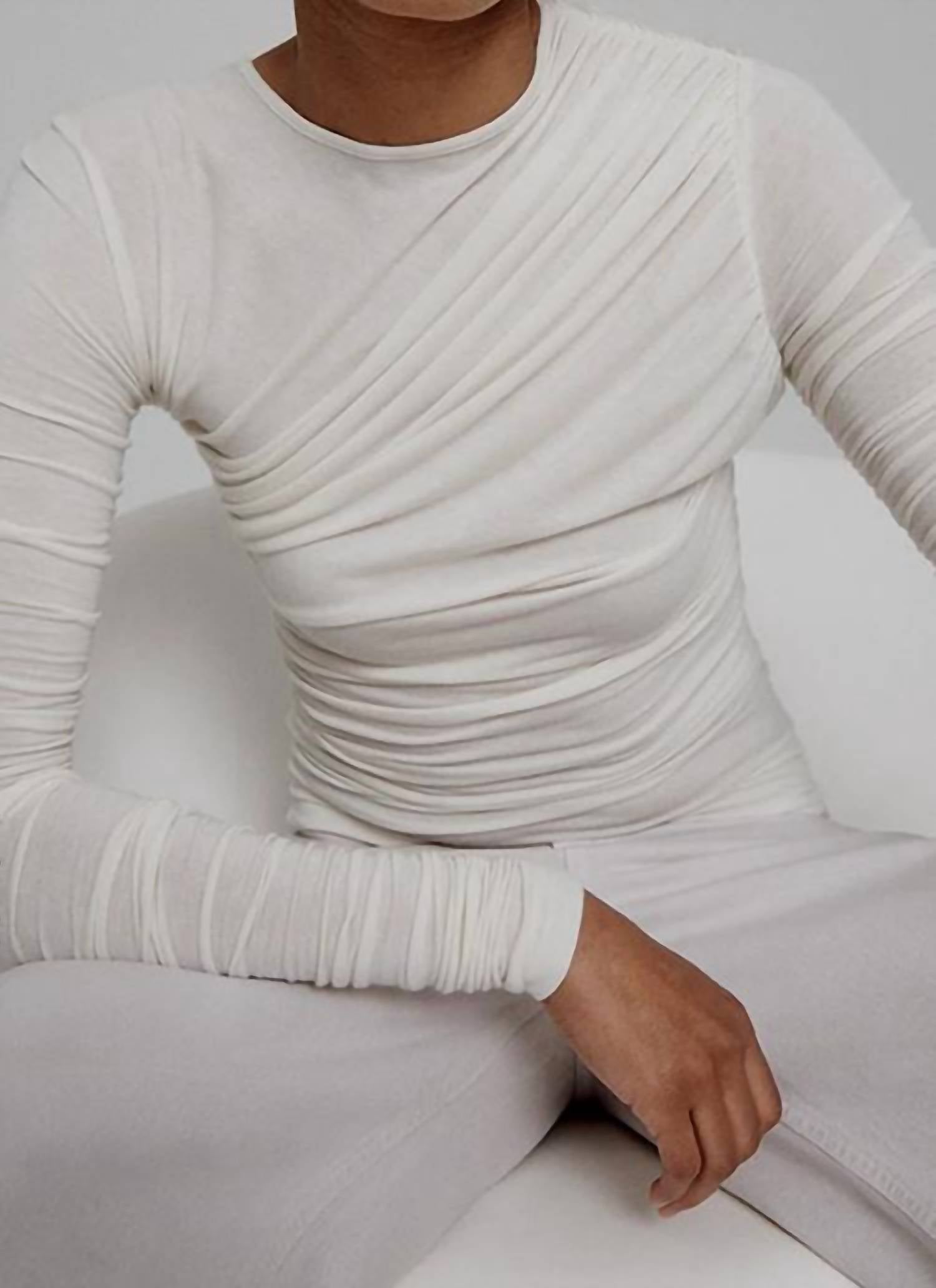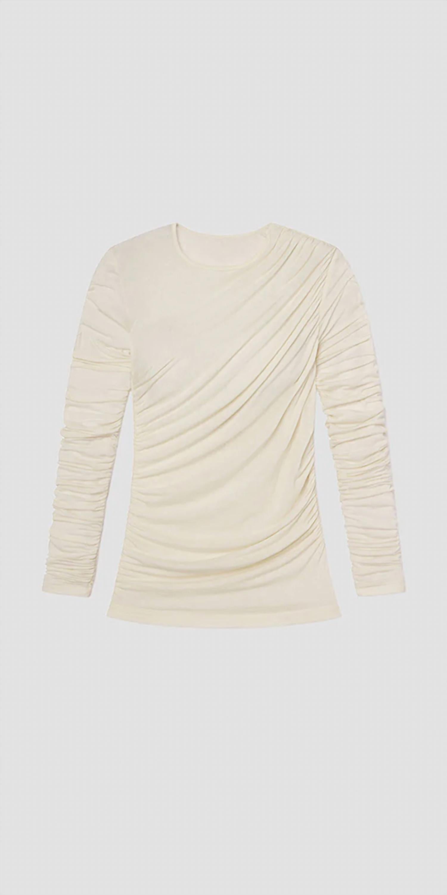 A long sleeve top you can wear with denim, skirts, well... just about anything! Embrace sophistication with the AGOLDE Women's Tania Twist Tee, a long-sleeve masterpiece in an elegant Oat Milk hue. Crafted from a blend of 94% Tencel and 6% Spandex, this versatile top combines a soft-stretch feel with a figure-flattering, slim fit silhouette. The semi-sheer, solid pattern and mockneck elevate the look, while the pull-on closure makes it effortlessly chic for any occasion. Perfect for a holiday party or everyday elegance.