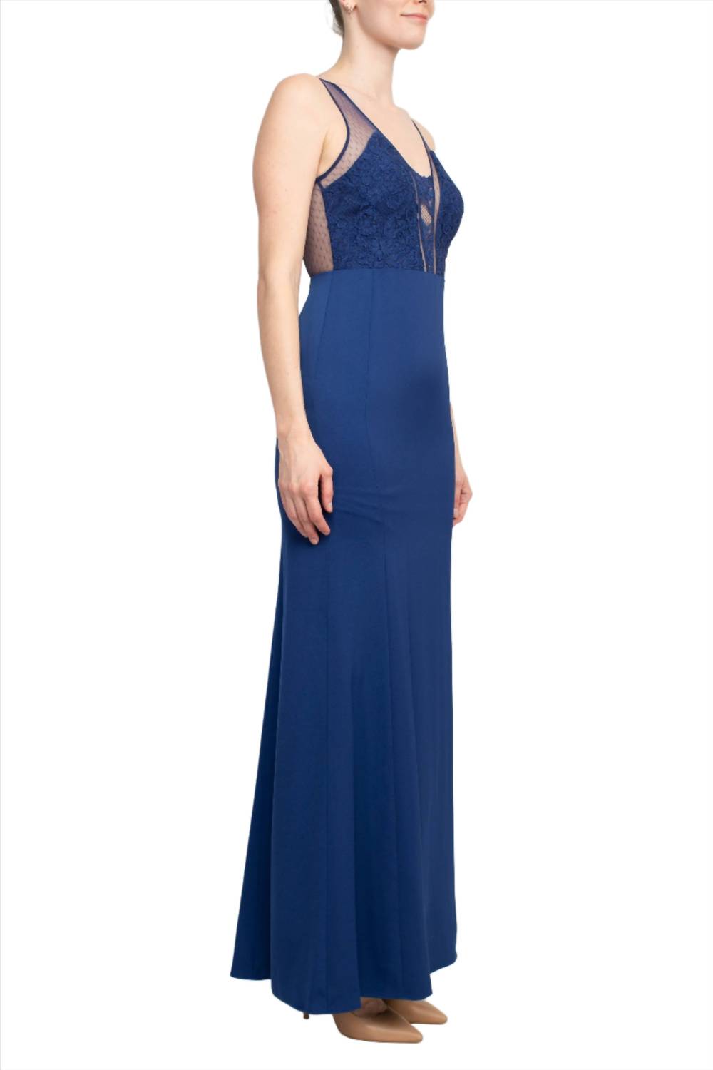 Elevate your evening attire with the V-neck Illusion Floral Embroidered Taffeta Dress by AIDAN MATTOX, designed to captivate in a stunning navy hue. This sleeveless dress features a textured, floral-embroidered taffeta skirt with a luxurious crepe bodice crafted from a 77% Nylon 23% Viscose blend. Measuring 59.5 inches in length, this gown is tailored for sophistication with a zip closure at the back to ensure a sleek silhouette. Perfect for spring events, this quiet luxury piece requires dry cleaning to maintain its pristine quality.