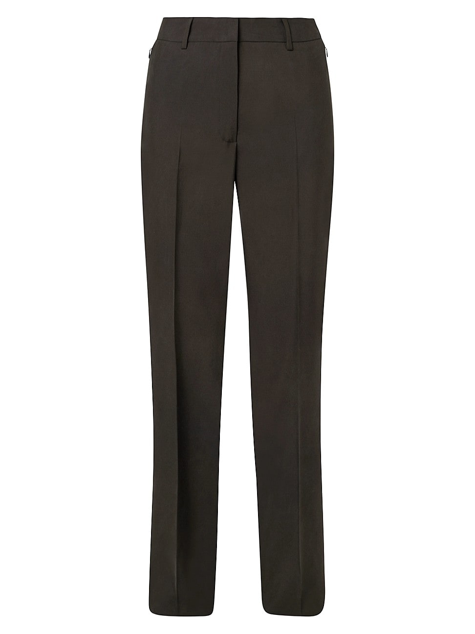 Elevate your wardrobe with these luxurious Akris wide leg pants crafted from premium mulberry silk Featuring a versatile moss color they include belt loops and a button zip fly closure for a tailored fit Two side slip pockets add functionality while maintaining elegance Perfect for any season these pants are designed to flatter with an inseam of about 35 inches and a rise of approximately 8 inches