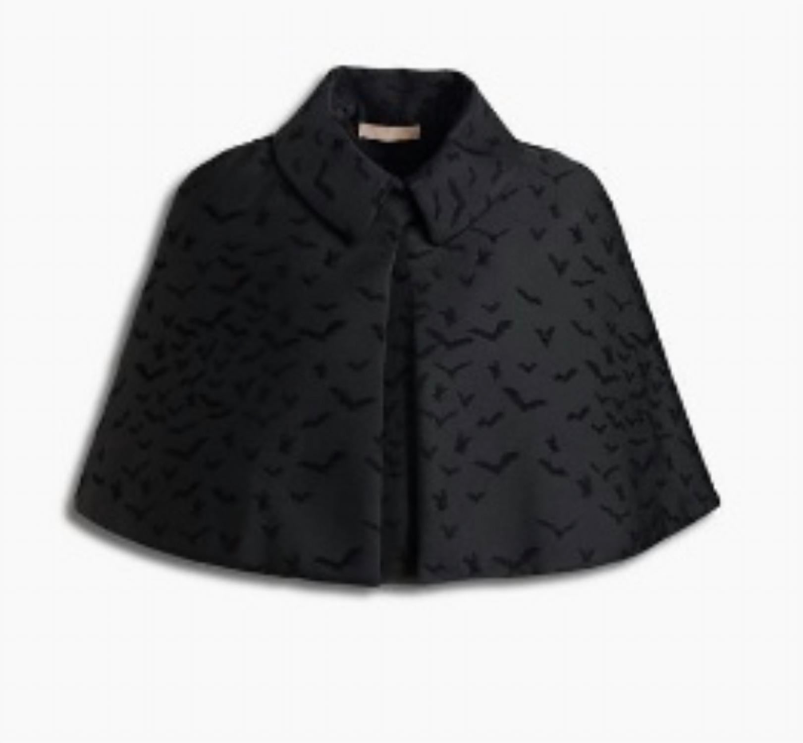 Throw on this amazing cape for extra warmth and style during the cooler seasons. This cropped cape is crafted from jacquard fabric with a flocked finish, accented by leather trims for a refined touch. Designed with a button fastening at the front and fully lined for comfort, it offers structure and elegance. Made from 87% polyester, 7% polyamide, and 6% viscose, the mid-weight, non-stretchy fabric provides durability and a polished silhouette.