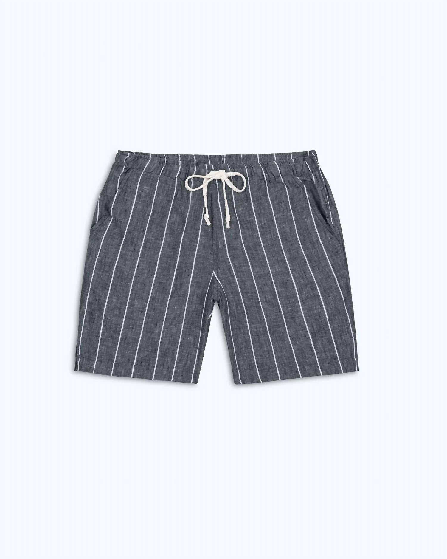 Step into sustainable style with the Bo Pull-on Shorts by Alex Crane, crafted for the modern man in Slate color. These flat front shorts showcase solid patterns and come with convenient pockets, perfect for any summer adventure. Made from 100% sustainably-grown French linen, they are GOTS-certified and dyed with organic pigments. Featuring a tie closure, care instructions include machine wash and tumble dry for easy maintenance.