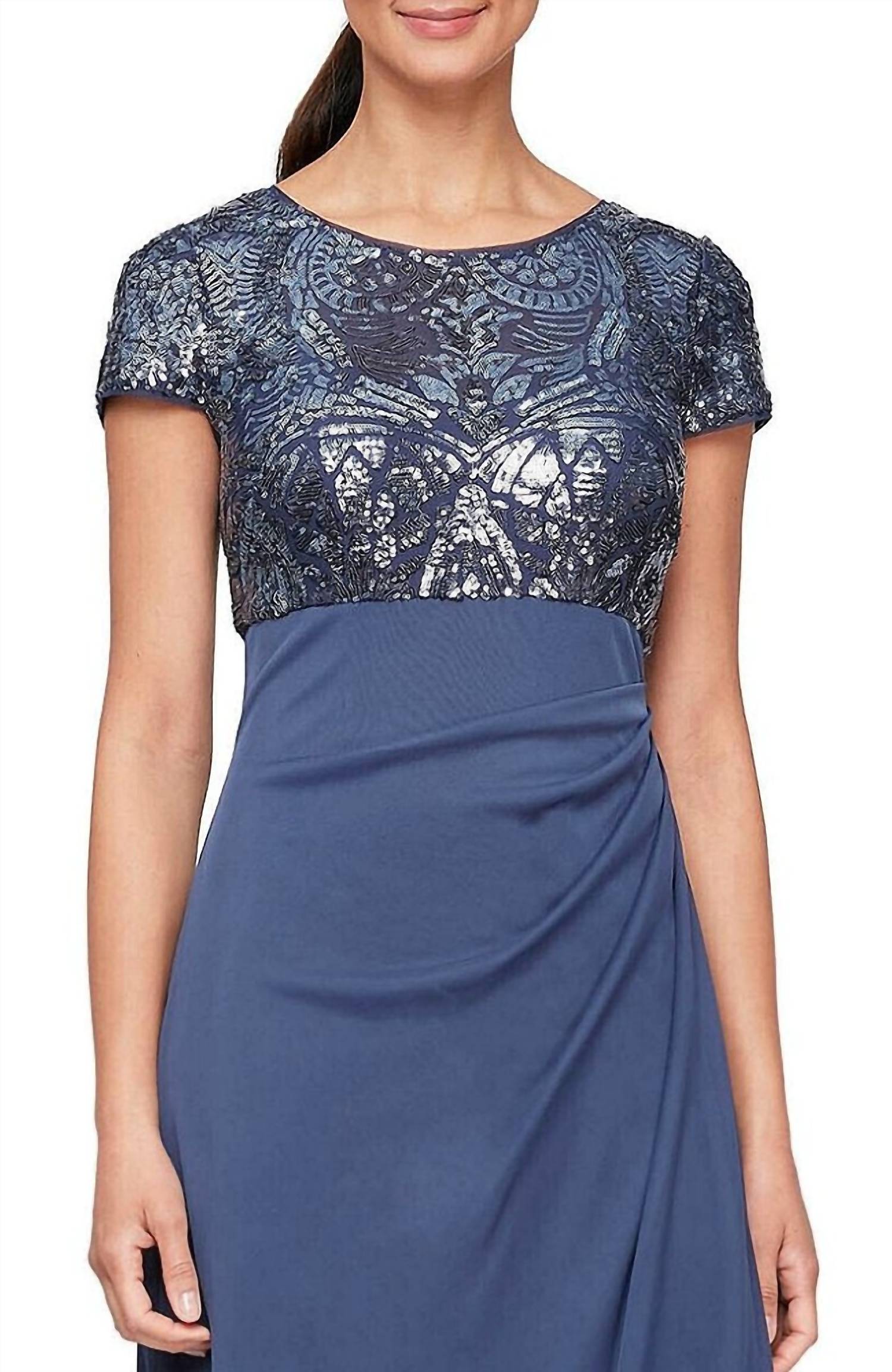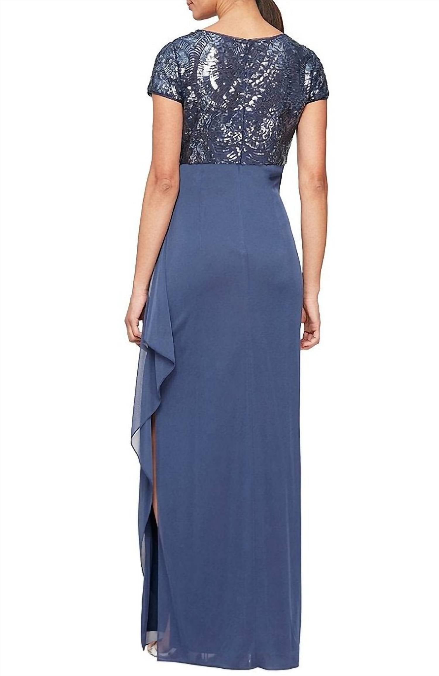 Alex Evenings - Long Empire Sequin Side Ruffle Gown