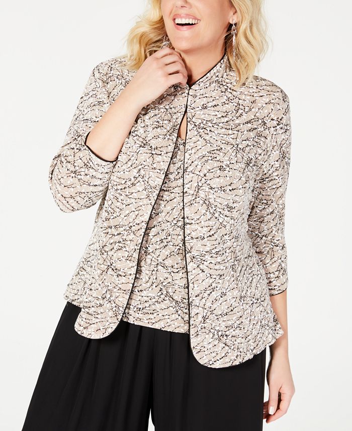 Alex Evenings Women's Foiled Print Twinset Beige Size 2X