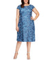 Alex Evenings Women's Lace Sequined V Back Floral Cap Sleeve Scoop Neck Below Dress Blue Size Petite Small