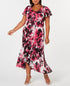 Alex Evenings Women's Pink Floral Short Sleeve V Neck Maxi Hi Lo Dress Pink Size 18W