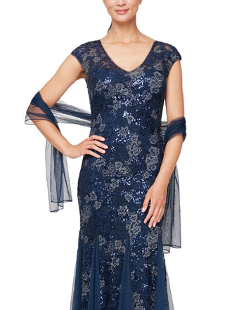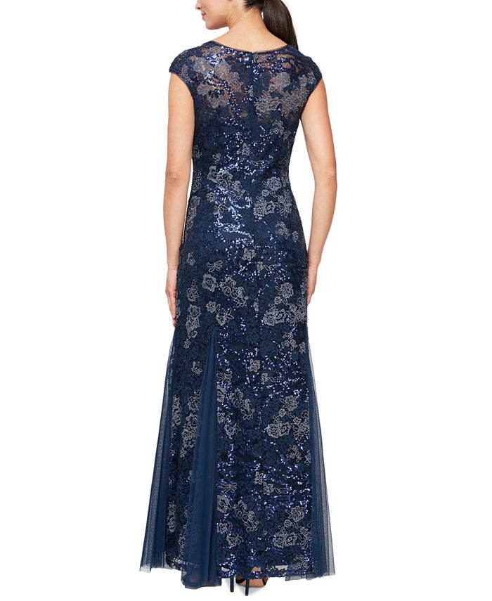 Alex Evenings Women's Sequin Embroidered Trumpet Gown Blue Size 10