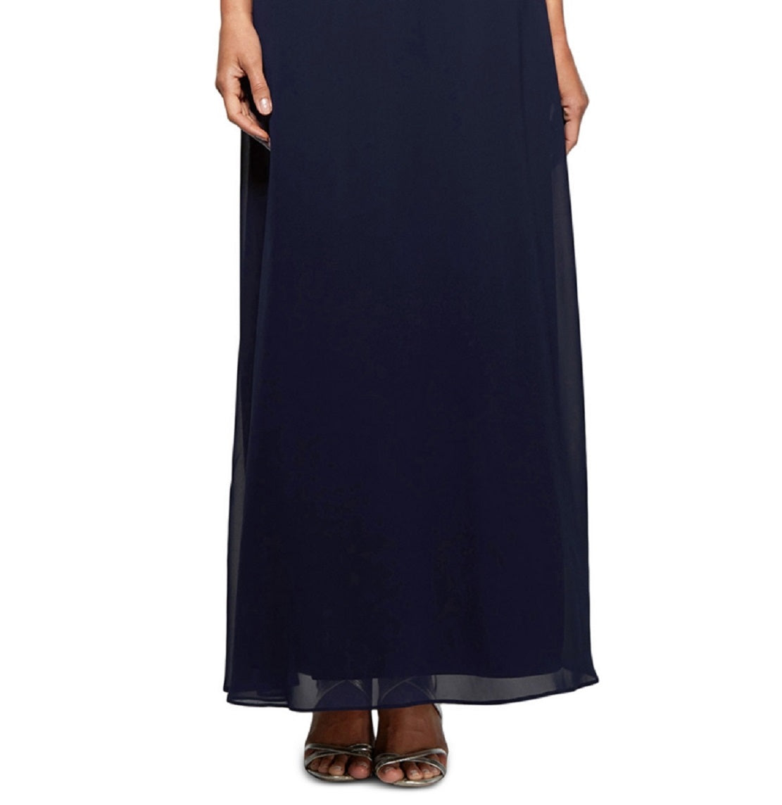 Alex Evenings Women's Sequin Lace & Chiffon Gown Blue Size 12