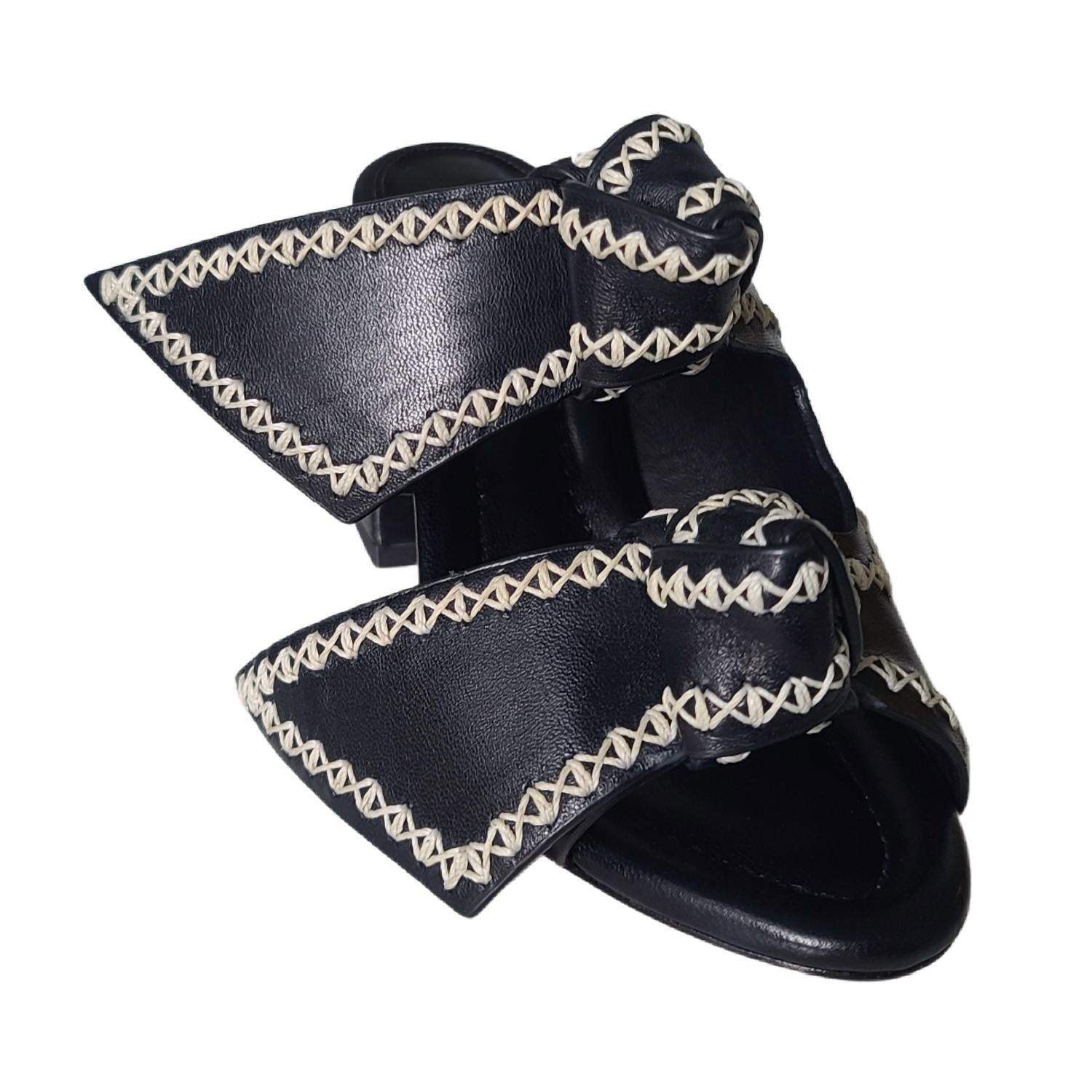 Step up your style game with the Women's Asymmetric Clarita Platform Sandal by Alexandre Birman, a stunning blend of classic and cool. Crafted from luxurious black Nappa leather, these sandals feature exquisite embroidery reminiscent of fine horse riding saddles. The design is completed with signature Clarita bows and a substantial 4.7-inch platform heel, ensuring both elegance and a commanding presence. The cushioned insoles add an extra layer of comfort, making them perfect for all-day wear.