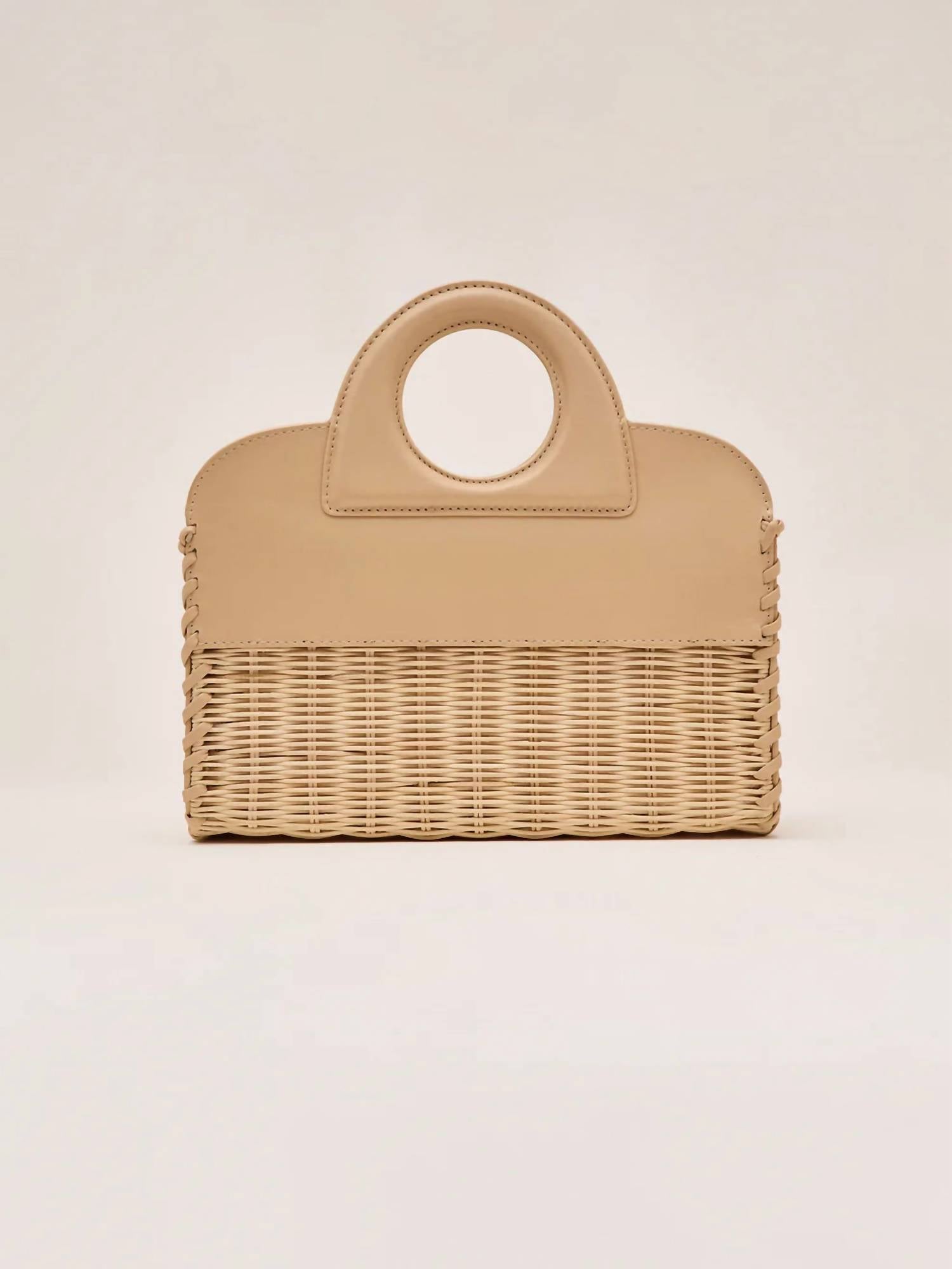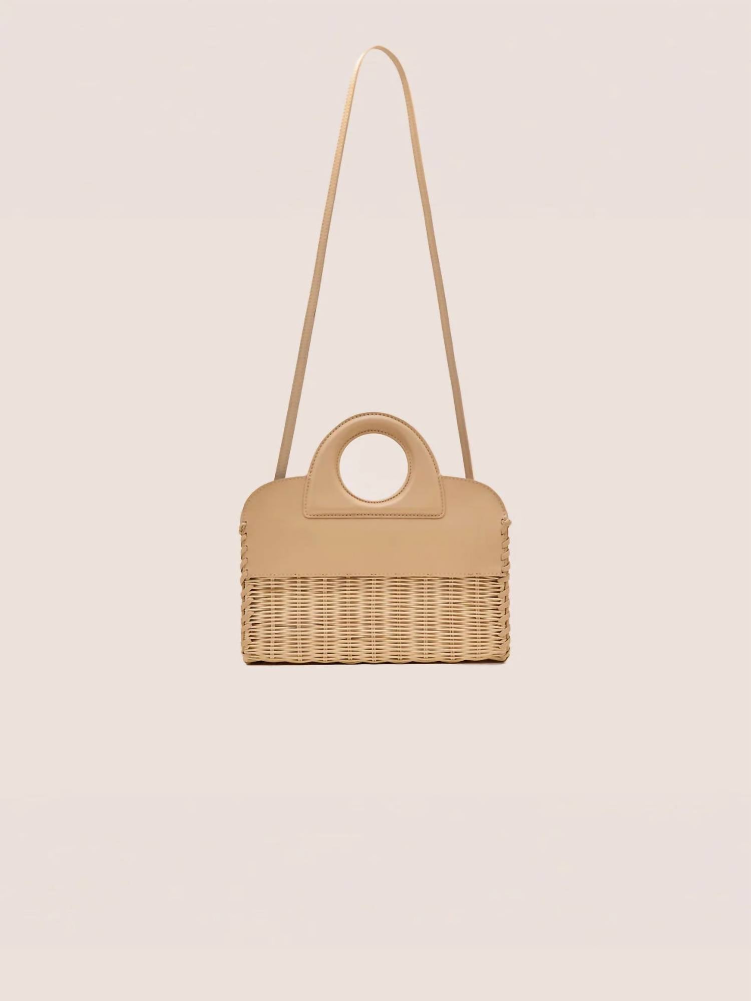 This crossbody bag will be your go-to bag of the season. Meet the Bianca Picnic Bag by ALEXIS, a perfect blend of style and functionality in a sophisticated Dune color. This crossbody bag boasts a handwoven rattan exterior with an interior leather pouch for added elegance. It's made of 100% Cow Leather With Rattan Trim. Measuring 10 inches in length, 7.25 inches in height, and 3.75 inches in depth, it features a 2.5-inch handle drop. Designed for versatility, the bag includes a detachable crossbody strap for convenient use.