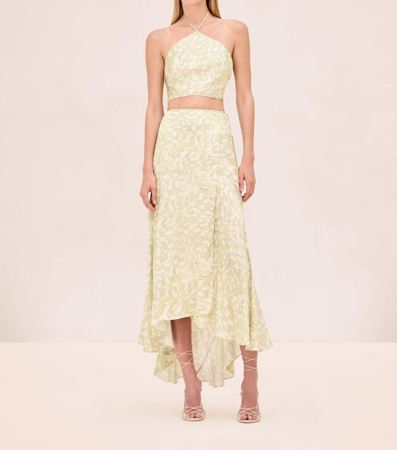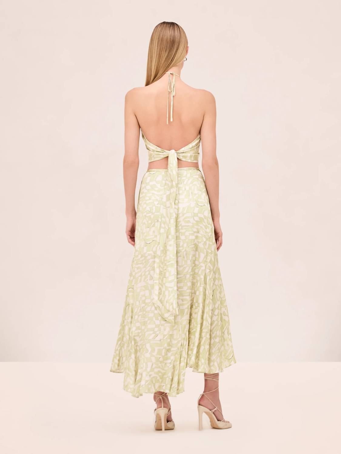 The perfect crop top for those warmer weather days. The Alexis Nali Top in Pistachio Mirage is a stunning sleeveless crop top perfect for capturing the essence of summer style. Its halter neckline and abstract patterned design offer a fresh, Y2K-inspired look that is perfect for a holiday party during the Easter season. Featuring a convenient tie closure, this women’s top is both stylish and functional.