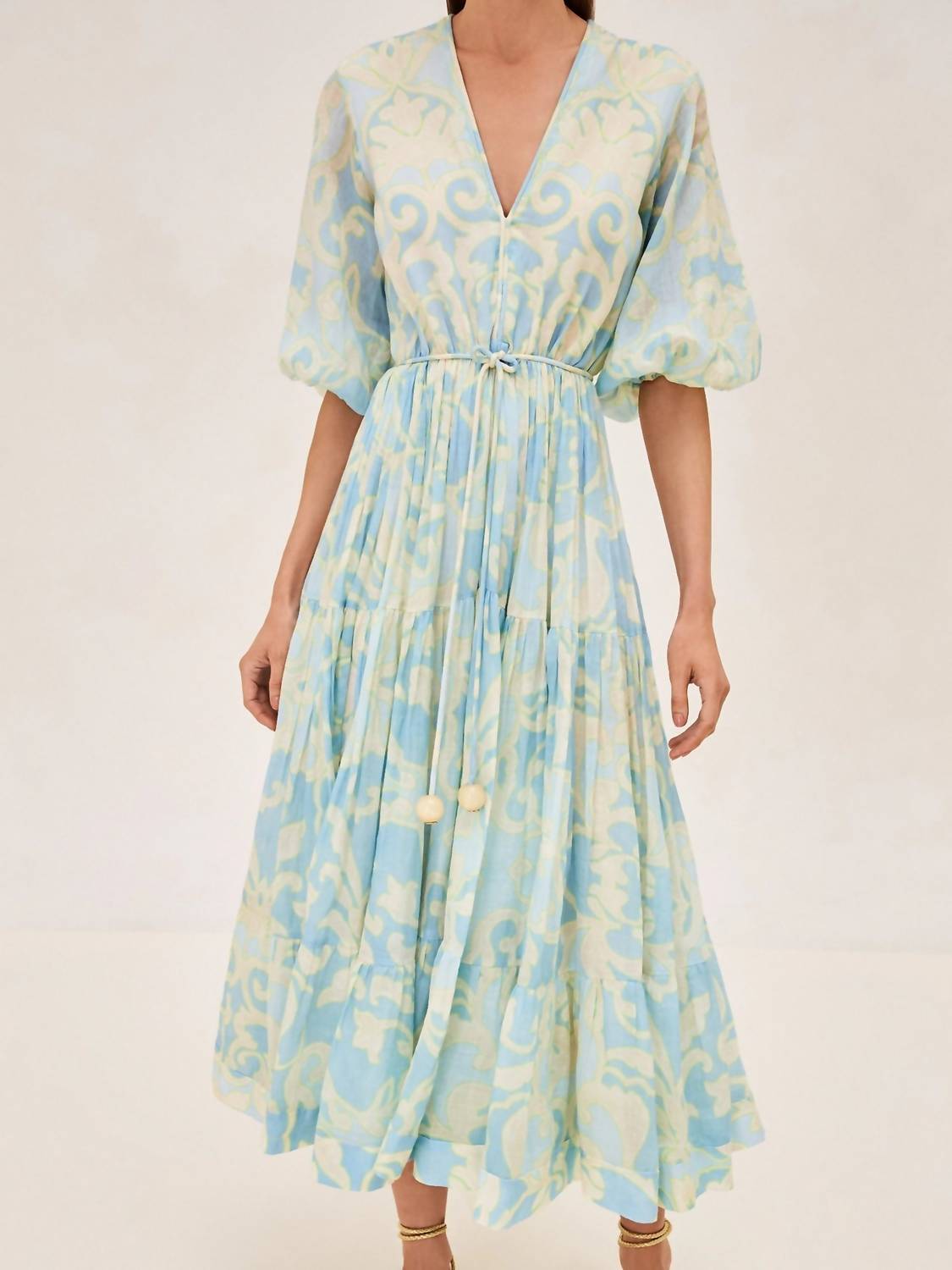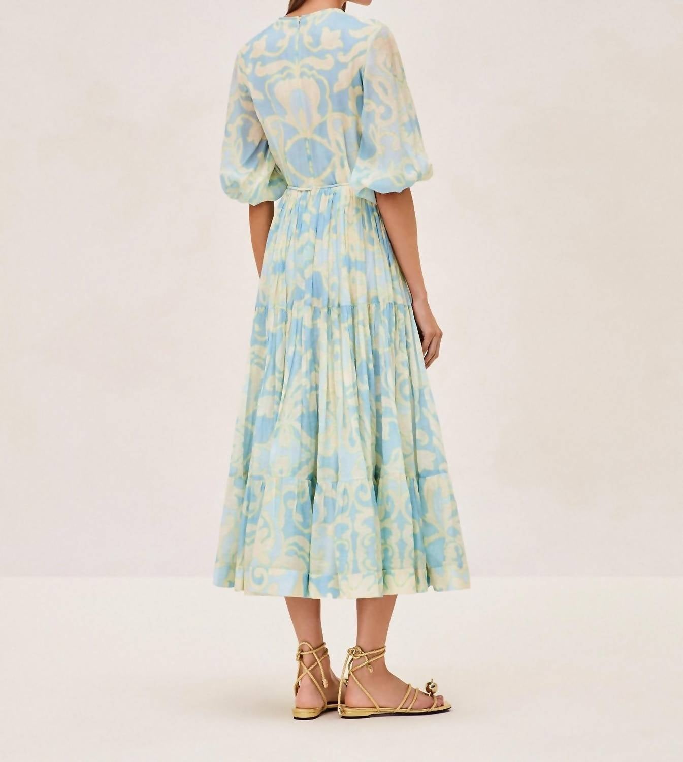 Just add slides or mules and you are good to go. Discover the Vilas Midi Dress by ALEXIS, a perfect fusion of comfort and style in an enchanting blue vine print. Featuring elbow sleeves and a flattering A-line silhouette, this dress is designed for effortless elegance. Made from soft cotton, it has a V-neckline and a convenient pull-on closure. Ideal for both day events and casual evenings, the dress embodies a boho chic trend and is perfect for an Easter gathering. Composition: 100% Cotton. Origin: US. Care: Machine wash.