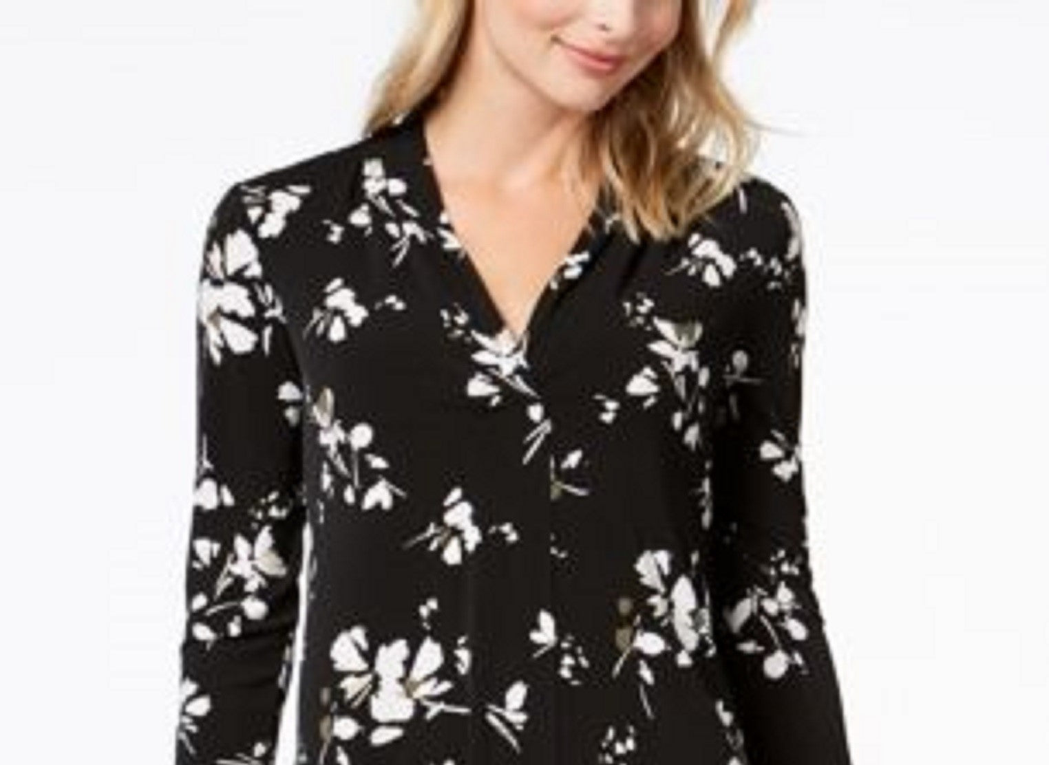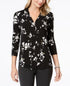 Charter Club Women's Printed V-Neck Top Black Size Medium
