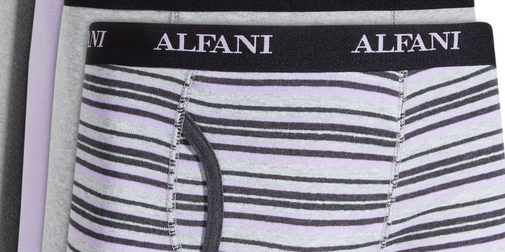 Alfani's versatile boxer brief five-pack lets you choose from a variety of solid and stripe patterns depending on how you want to curate your vibe| and each pair comes equipped with moisture-wicking fabric and support|
