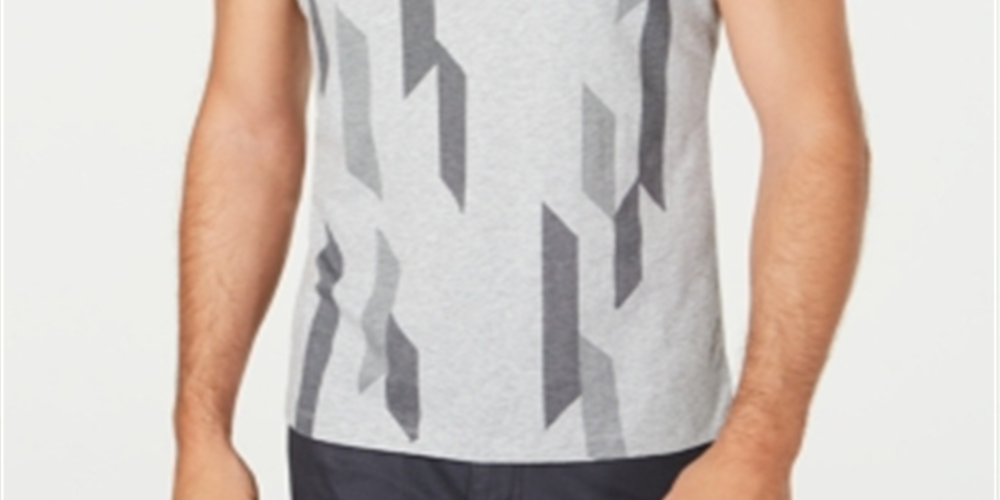 Alfani Men's Bar Graphic Intarsia T-Shirt Gray Size Small