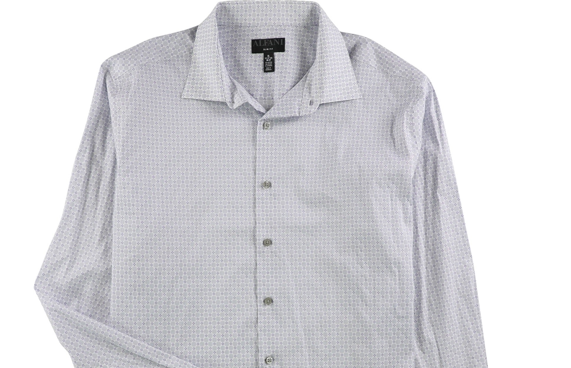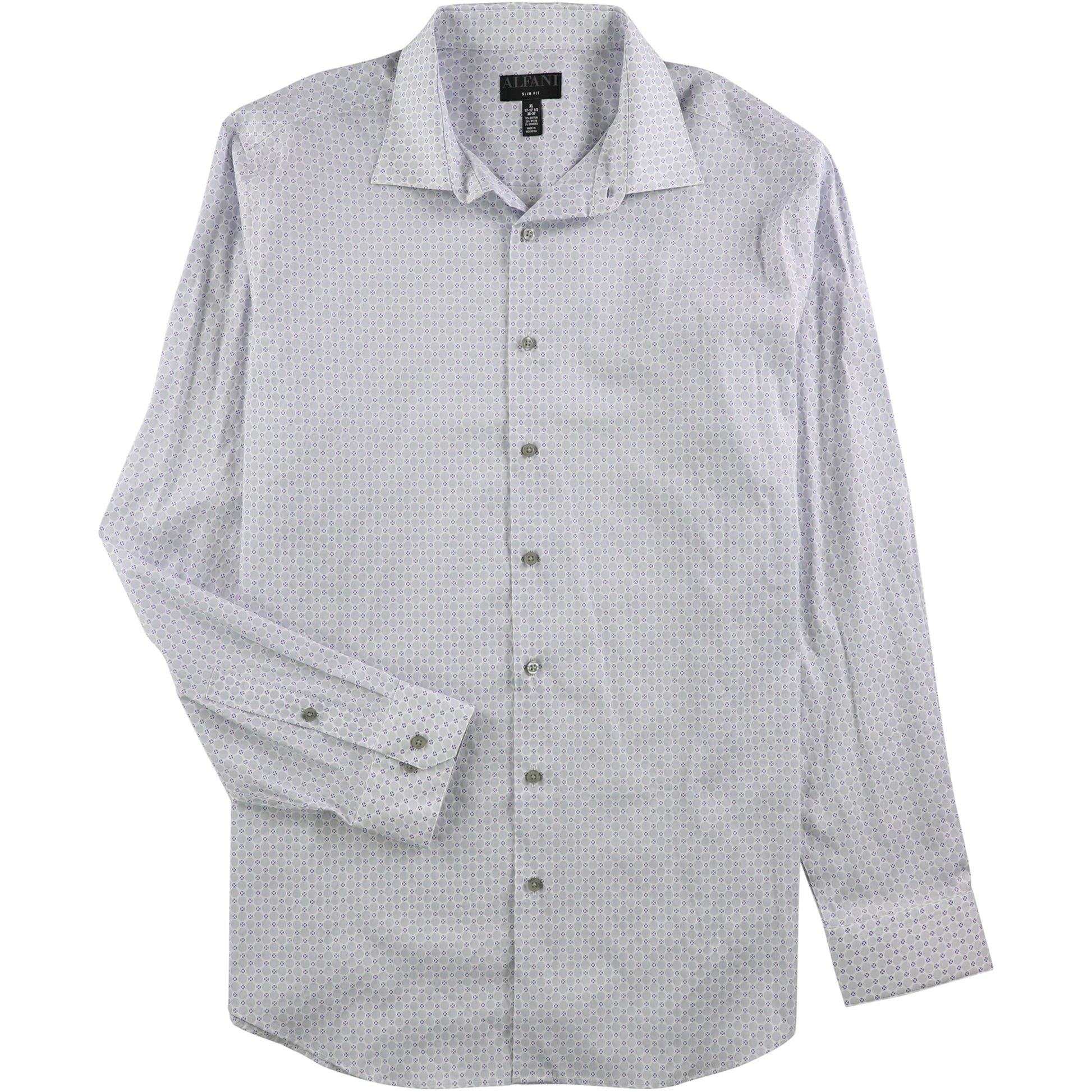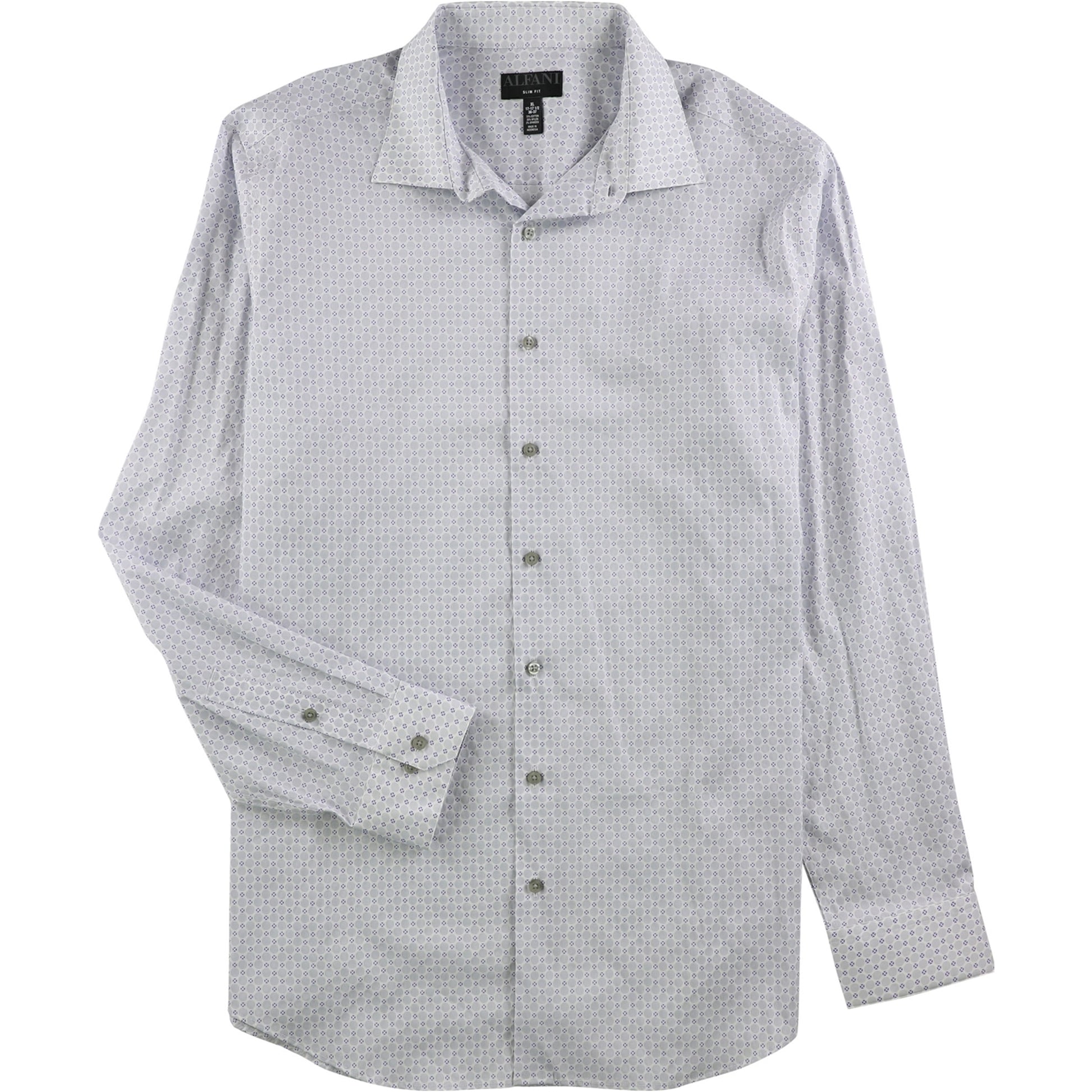 Alfani Men's Circle Geometric Button up Dress Shirt White Size 32-33