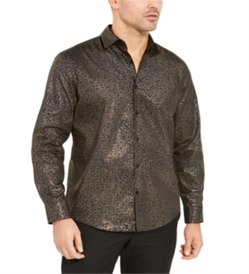 Alfani Men's Classic Fit Geometric Grid Print Shirt Black Size Small